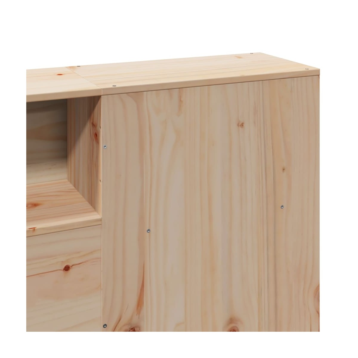 Consigue un sueño más reparador con esta estructura de cama. Es un aporte acogedor para cualquier dormitorio. Estructura estable y duradera: La madera de pino maciza es conocida por su resistencia y durabilidad. Sus vetas rectas y sus característicos nudos contribuyen a su encanto rústico.Aprovecha al máximo el espacio: Con 7 prácticos compartimentos, este cabecero es una opción que ahorra espacio y puede sustituir la necesidad de una mesita de noche, ayudando a maximizar el espacio de tu dormitorio y haciéndolo ideal para espacios pequeños o limitados.Cabecero y estribo de cama funcionales: El cabecero y el estribo de cama mantienen el colchón en su lugar. Además, la cabecera te brinda un excelente soporte para la espalda mientras estás sentado leyendo o mirando la televisión.Somier de láminas para un soporte óptimo: La estructura de cama está equipada con un somier de láminas para el apoyo y la transpirabilidad del colchón. Información útil:El colchón no está incluido con la cama. Disponemos de una variada selección de colchones. Puedes echar un vistazo a nuestra tienda para buscar el colchón correspondiente.