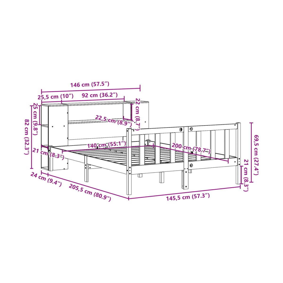 - Dimensiones de colchón compatible: 140 x 200 cm (ancho x largo) (colchón no incluido)