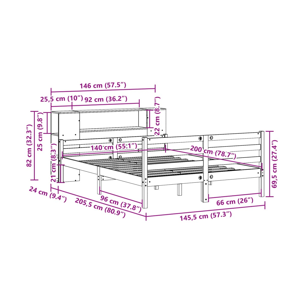 - Dimensiones de colchón compatible: 140 x 200 cm (ancho x largo) (colchón no incluido)