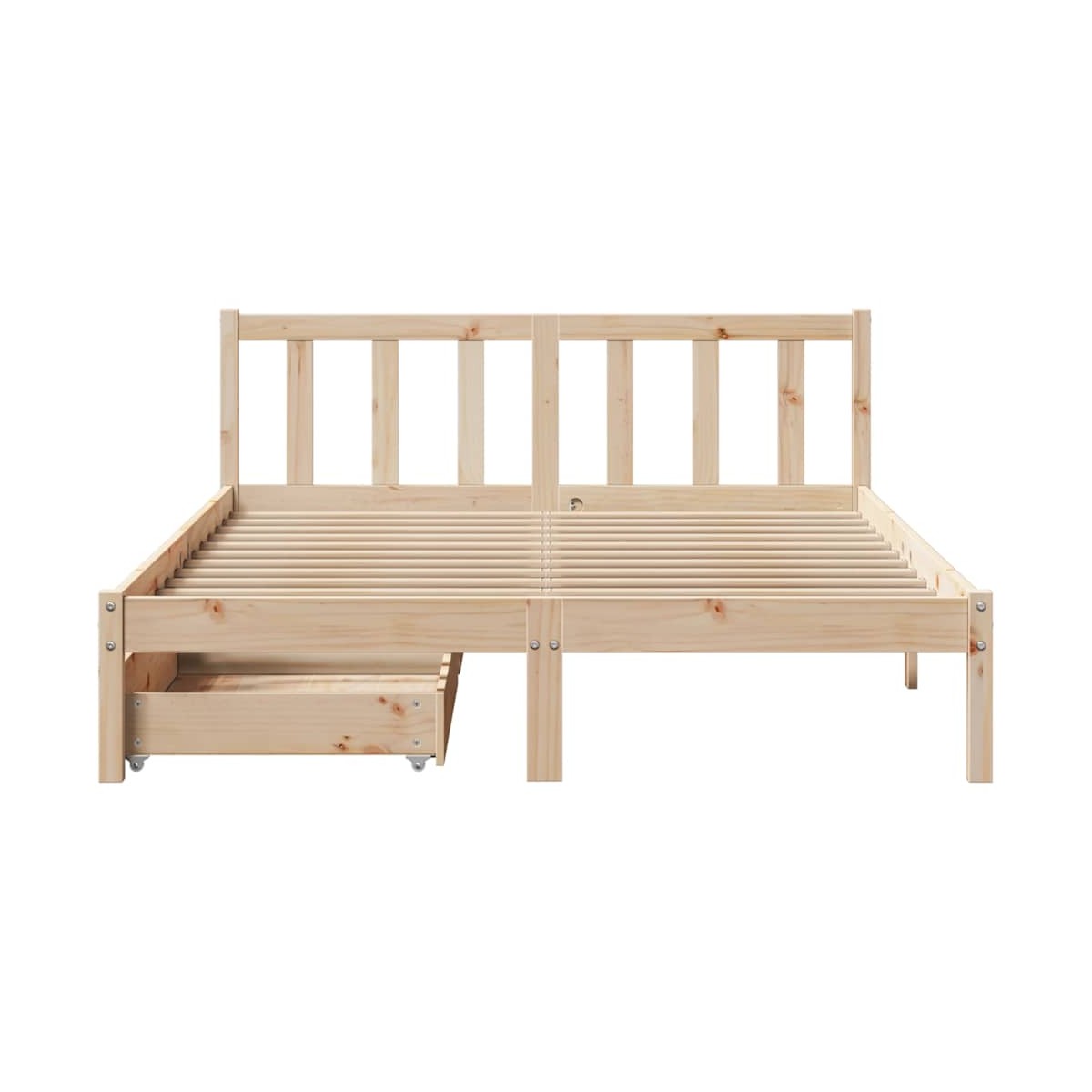 Consigue un sueño más reparador con esta estructura de cama. Es un aporte acogedor para cualquier dormitorio. Estructura estable y duradera: La madera de pino maciza es conocida por su resistencia y durabilidad. Sus vetas rectas y sus característicos nudos contribuyen a su encanto rústico.Somier de láminas para un soporte óptimo: La estructura de cama está equipada con un somier de láminas para el apoyo y la transpirabilidad del colchón.Aprovecha al máximo el espacio: Esta estructura de cama cuenta con dos cajones debajo, que proporcionan almacenamiento para artículos como ropa de cama extra, ropa de temporada y juguetes.Maniobrabilidad sin esfuerzo: Este cajón de almacenamiento bajo la cama cuenta con cuatro ruedas, que proporcionan una maniobrabilidad suave y sin esfuerzo para deslizarse dentro y fuera de debajo de tu cama. Información útil:El colchón no está incluido con la cama. Disponemos de una variada selección de colchones. Puedes echar un vistazo a nuestra tienda para buscar el colchón correspondiente.