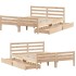 Consigue un sueño más reparador con esta estructura de cama. Es un aporte acogedor para cualquier dormitorio. Estructura estable y duradera: La madera de pino maciza es conocida por su resistencia y durabilidad. Sus vetas rectas y sus característicos nudos contribuyen a su encanto rústico.Somier de láminas para un soporte óptimo: La estructura de cama está equipada con un somier de láminas para el apoyo y la transpirabilidad del colchón.Aprovecha al máximo el espacio: Esta estructura de cama cuenta con dos cajones debajo, que proporcionan almacenamiento para artículos como ropa de cama extra, ropa de temporada y juguetes.Maniobrabilidad sin esfuerzo: Este cajón de almacenamiento bajo la cama cuenta con cuatro ruedas, que proporcionan una maniobrabilidad suave y sin esfuerzo para deslizarse dentro y fuera de debajo de tu cama. Información útil:El colchón no está incluido con la cama. Disponemos de una variada selección de colchones. Puedes echar un vistazo a nuestra tienda para buscar el colchón correspondiente.