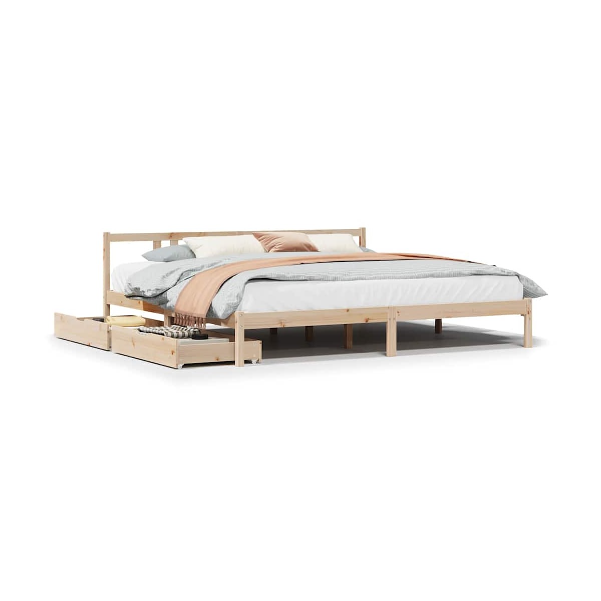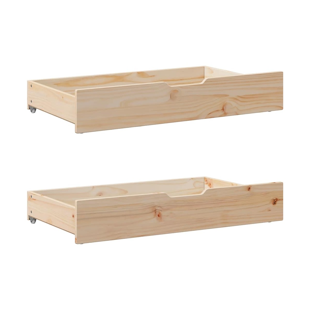 Consigue un sueño más reparador con esta estructura de cama. Es un aporte acogedor para cualquier dormitorio. Estructura estable y duradera: La madera de pino maciza es conocida por su resistencia y durabilidad. Sus vetas rectas y sus característicos nudos contribuyen a su encanto rústico.Somier de láminas para un soporte óptimo: La estructura de cama está equipada con un somier de láminas para el apoyo y la transpirabilidad del colchón.Aprovecha al máximo el espacio: Esta estructura de cama cuenta con dos cajones debajo, que proporcionan almacenamiento para artículos como ropa de cama extra, ropa de temporada y juguetes.Maniobrabilidad sin esfuerzo: Este cajón de almacenamiento bajo la cama cuenta con cuatro ruedas, que proporcionan una maniobrabilidad suave y sin esfuerzo para deslizarse dentro y fuera de debajo de tu cama. Información útil:El colchón no está incluido con la cama. Disponemos de una variada selección de colchones. Puedes echar un vistazo a nuestra tienda para buscar el colchón correspondiente.