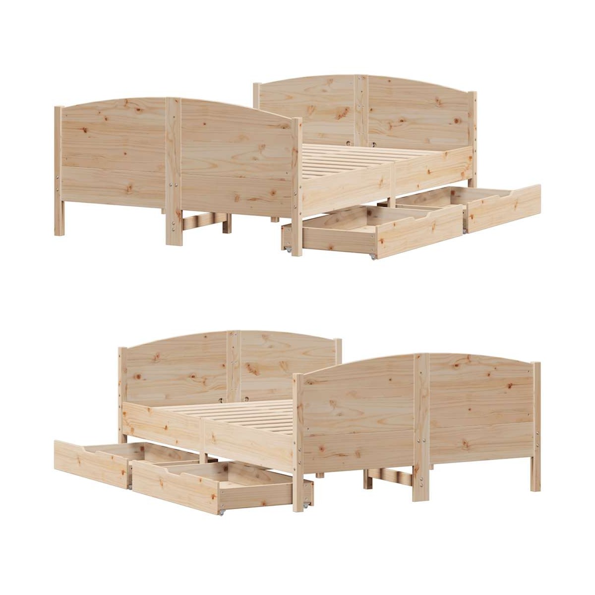 Consigue un sueño más reparador con esta estructura de cama. Es un aporte acogedor para cualquier dormitorio. Estructura estable y duradera: La madera de pino maciza es conocida por su resistencia y durabilidad. Sus vetas rectas y sus característicos nudos contribuyen a su encanto rústico.Somier de láminas para un soporte óptimo: La estructura de cama está equipada con un somier de láminas para el apoyo y la transpirabilidad del colchón.Cabecero versátil: Esta estructura de cama viene con un cabecero que proporciona un excelente soporte para la espalda cuando te sientas en la cama para leer o ver la televisión, a la vez que sirve como elemento decorativo.Aproveche al máximo el espacio: Este somier cuenta con dos cajones debajo, que proporcionan almacenamiento para artículos como ropa de cama extra, ropa de temporada y juguetes.Maniobrabilidad sin esfuerzo: Este cajón de almacenamiento bajo la cama cuenta con cuatro ruedas, que proporcionan una maniobrabilidad suave y sin esfuerzo para deslizarse dentro y fuera de debajo de tu cama. Información útil:El colchón no está incluido con la cama. Disponemos de una variada selección de colchones. Puedes echar un vistazo a nuestra tienda para buscar el colchón correspondiente.