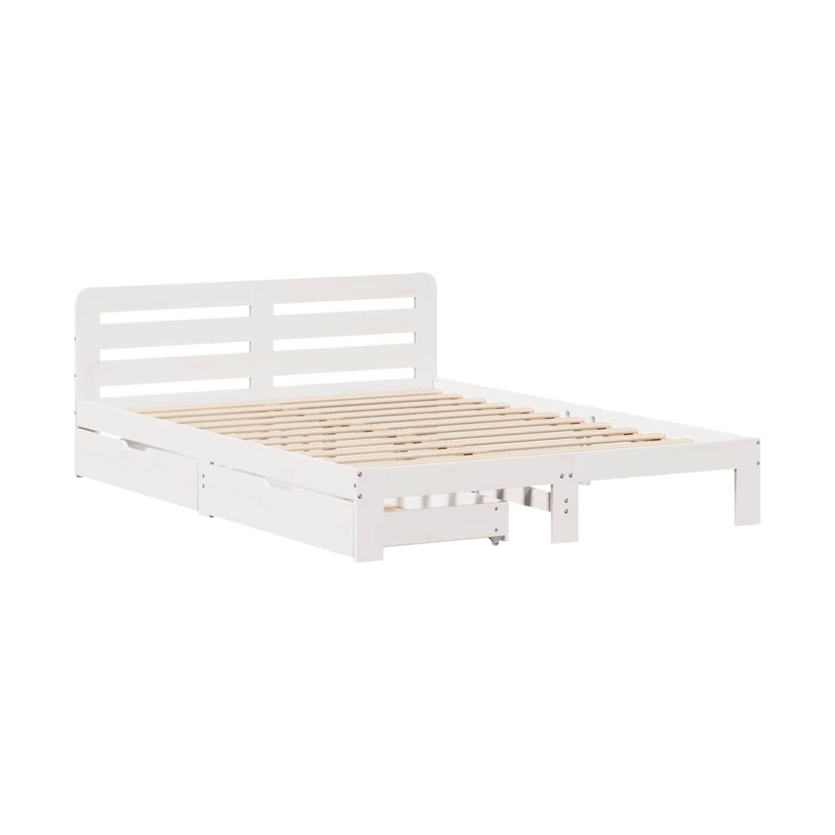 Consigue un sueño más reparador con esta estructura de cama. Es un aporte acogedor para cualquier dormitorio. Estructura estable y duradera: La madera de pino maciza es conocida por su resistencia y durabilidad. Sus vetas rectas y sus característicos nudos contribuyen a su encanto rústico.Somier de láminas para un soporte óptimo: El base de cama está equipado con un somier de láminas para el apoyo y la transpirabilidad del colchón.Maniobrabilidad sin esfuerzo: Este cajón de almacenamiento bajo la cama cuenta con cuatro ruedas, que proporcionan una maniobrabilidad suave y sin esfuerzo para deslizarse dentro y fuera de debajo de tu cama.Patas estables y duraderas: Este somier está sostenido por patas resistentes, lo que garantiza estabilidad, seguridad y firmeza.Cabecero versátil: Esta cama de paneles viene con un cabecero que proporciona un excelente soporte para la espalda cuando te sientas en la cama para leer o ver la televisión, a la vez que sirve como elemento decorativo. Información útil:El colchón no está incluido con la cama. Disponemos de una variada selección de colchones. Puedes echar un vistazo a nuestra tienda para buscar el colchón correspondiente.