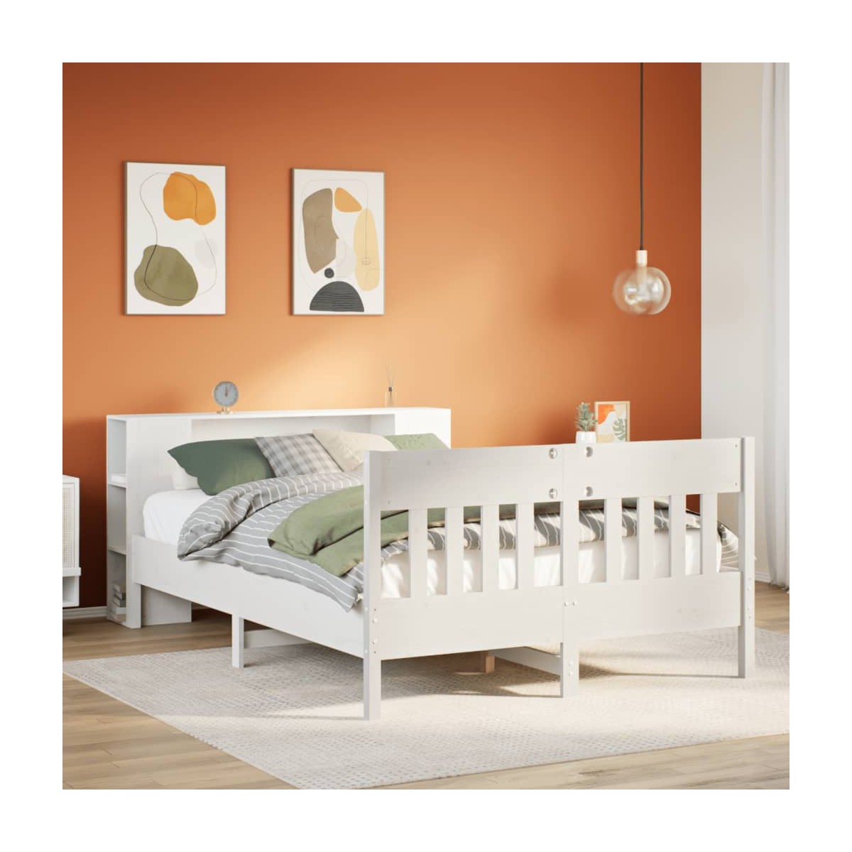 ¡Consigue una mejor noche de sueño reparador con esta cama con estantería! Es un aporte acogedor para cualquier dormitorio. Estructura estable y duradera: La madera de pino maciza es conocida por su resistencia y durabilidad. Sus vetas rectas y sus característicos nudos contribuyen a su encanto rústico. Somier de láminas para un soporte óptimo: La estructura de cama está equipada con un somier de láminas para el apoyo y la transpirabilidad del colchón. Amplio espacio de almacenamiento: El cabecero de estantería ofrece un amplio espacio de almacenamiento para mantener libros, artículos decorativos o pertenencias personales al alcance de la mano, lo que reduce el desorden en el dormitorio. Práctico pie de cama: El pie de cama no solo contribuye a la estabilidad general del marco de la cama, proporcionando un entorno seguro para dormir, sino que también asegura su colchón en su lugar y evita que las mantas, sábanas y otra ropa de cama se caigan del extremo de la cama, manteniendo una apariencia ordenada. Ahorro de espacio: Este cabecero es una opción de ahorro de espacio que puede sustituir la necesidad de una mesilla de noche, ayudando a maximizar el espacio de tu dormitorio, y haciéndolo ideal para espacios pequeños o limitados. Información útil:El colchón no está incluido con la cama. Disponemos de una variada selección de colchones. Puedes echar un vistazo a nuestra tienda para buscar el colchón correspondiente.