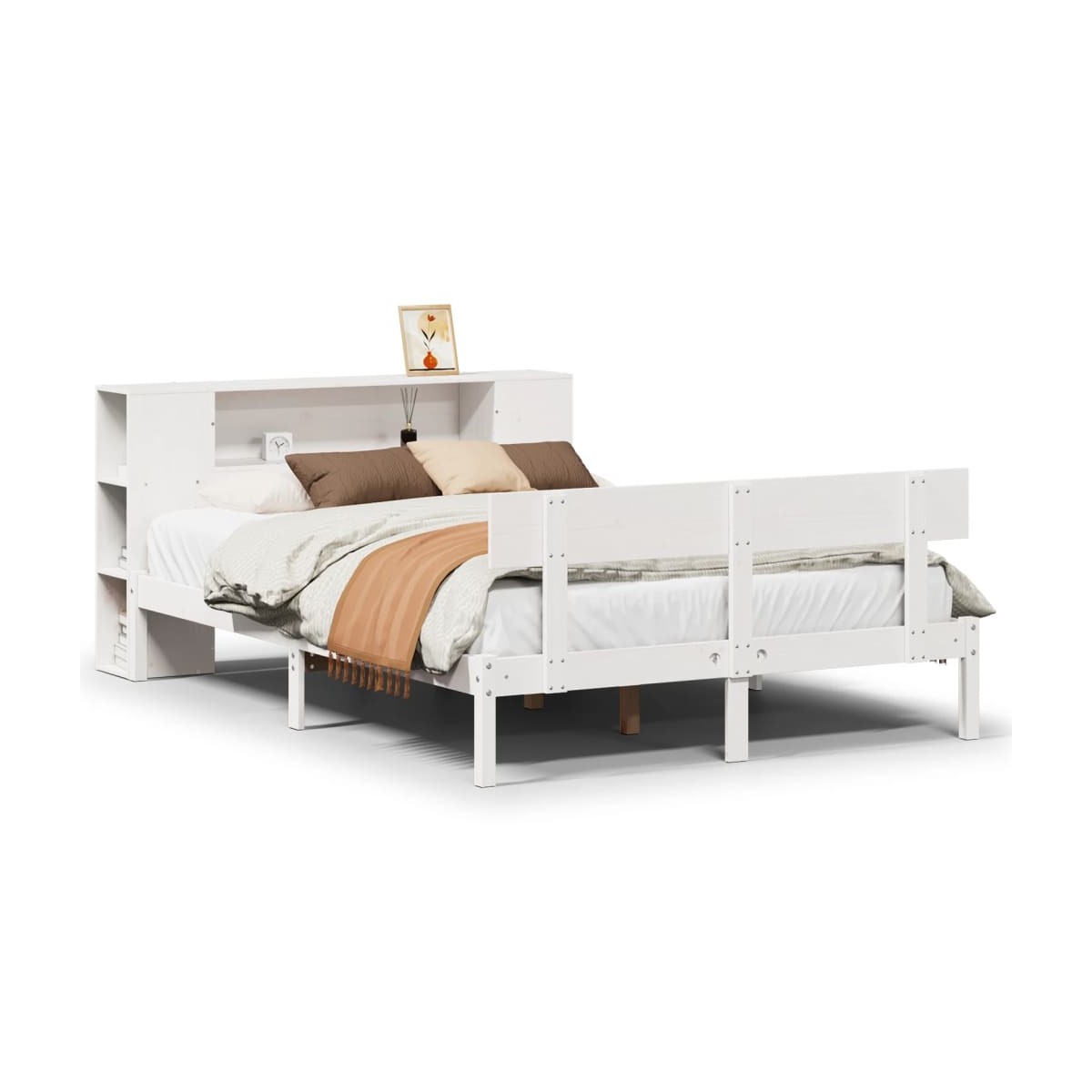 ¡Consigue una mejor noche de sueño reparador con esta cama con estantería! Es un aporte acogedor para cualquier dormitorio. Estructura estable y duradera: La madera de pino maciza es conocida por su resistencia y durabilidad. Sus vetas rectas y sus característicos nudos contribuyen a su encanto rústico.Somier de láminas para un soporte óptimo: La estructura de cama está equipada con un somier de láminas para el apoyo y la transpirabilidad del colchón.Amplio espacio de almacenamiento: El cabecero de estantería ofrece un amplio espacio de almacenamiento para mantener libros, artículos decorativos o pertenencias personales al alcance de la mano, lo que reduce el desorden en el dormitorio.Práctico pie de cama: El pie de cama no solo contribuye a la estabilidad general del marco de la cama, proporcionando un entorno seguro para dormir, sino que también asegura su colchón en su lugar y evita que las mantas, sábanas y otra ropa de cama se caigan del extremo de la cama, manteniendo una apariencia ordenada.Ahorro de espacio: Este cabecero es una opción de ahorro de espacio que puede sustituir la necesidad de una mesilla de noche, ayudando a maximizar el espacio de tu dormitorio, y haciéndolo ideal para espacios pequeños o limitados. Información útil:El colchón no está incluido con la cama. Disponemos de una variada selección de colchones. Puedes echar un vistazo a nuestra tienda para buscar el colchón correspondiente.