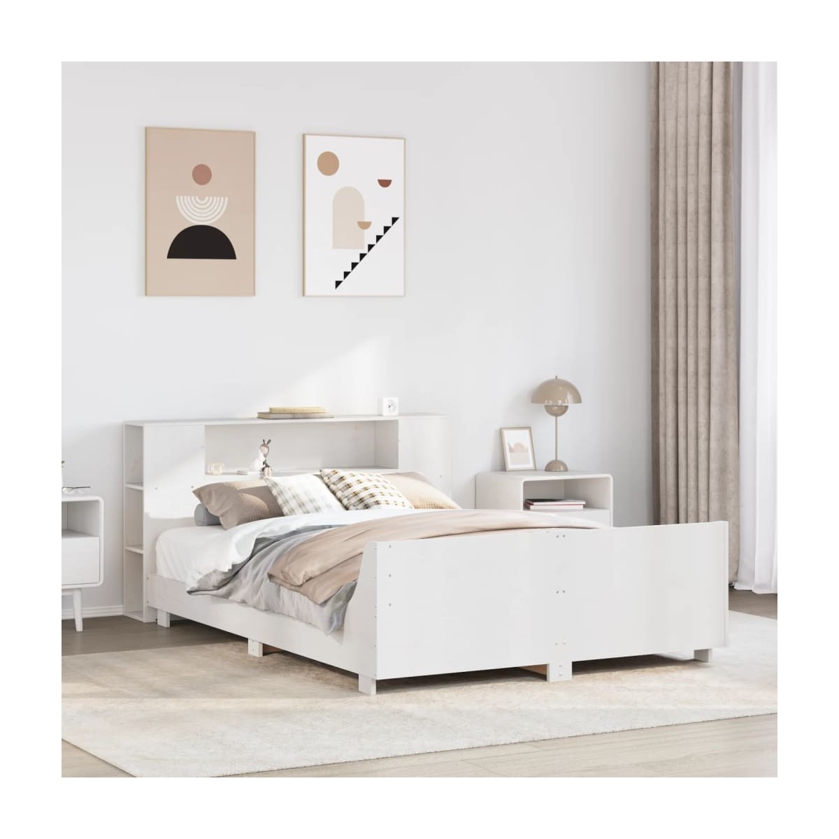 Consigue un sueño más reparador con esta estructura de cama. Es un aporte acogedor para cualquier dormitorio. Estructura estable y duradera: La madera de pino maciza es conocida por su resistencia y durabilidad. Sus vetas rectas y sus característicos nudos contribuyen a su encanto rústico.Aprovecha al máximo el espacio: Con 7 prácticos compartimentos, este cabecero es una opción que ahorra espacio y puede sustituir la necesidad de una mesita de noche, ayudando a maximizar el espacio de tu dormitorio y haciéndolo ideal para espacios pequeños o limitados.Cabecero versátil: Esta estructura de cama viene con un cabecero que proporciona un excelente soporte para la espalda cuando te sientas en la cama para leer o ver la televisión, a la vez que sirve como elemento decorativo.Somier de láminas para un soporte óptimo: La estructura de cama está equipada con un somier de láminas para el apoyo y la transpirabilidad del colchón. Información útil:El colchón no está incluido con la cama. Disponemos de una variada selección de colchones. Puedes echar un vistazo a nuestra tienda para buscar el colchón correspondiente.