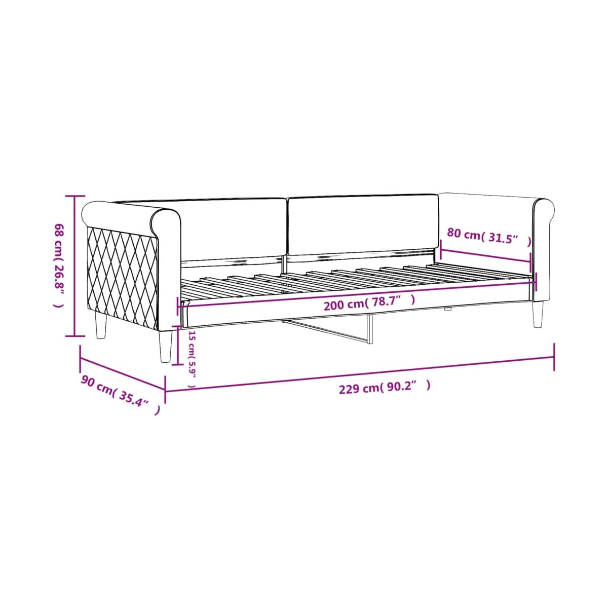 - Dimensiones totales: 229 x 90 x 68 cm (ancho x profundo x alto)
