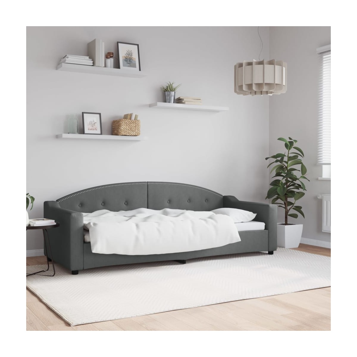 Este sofá cama 2 en 1, que sirve tanto de sofá como de cama, es un complemento práctico y llamativo para el salón o el dormitorio. Sofá cama versátil: El sofá cama puede utilizarse como sofá durante el día o como cama por la noche, para tener una solución rápida para alojar a invitados que pasen la noche.Experiencia confortable: El sofá cama está hecho de tela. La tela posee un aspecto sencillo y limpio, además de ser transpirable y duradera. Asimismo, el respaldo y los reposabrazos de la cama de invitados están acolchados con espuma para mejorar la comodidad.Estructura robusta y estable: La estructura principal del sofá cama está hecha de metal y madera maciza, por lo que es muy resistente y duradero. Estos listones de madera contrachapada permiten una mejor circulación del aire con el fin de mantener el colchón fresco durante más tiempo, además de mejorar la capacidad de peso y garantizar la estabilidad.Diseño moderno: ¡El sofá cama tiene un diseño moderno con líneas nítidas, un aspecto minimalista, así como luz natural, y añadirá un estilo moderno a la casa! Información útil:El colchón no está incluido con la cama. Disponemos de una variada selección de colchones. Puedes echar un vistazo a nuestra tienda para buscar el colchón correspondiente.