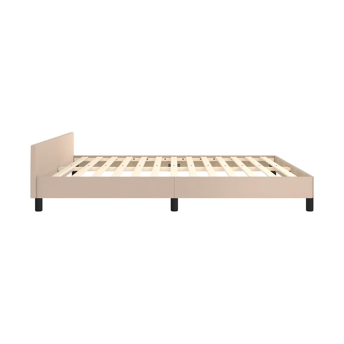 ¡Consigue un sueño más reparador con esta estructura de cama con cabecero! Es un aporte acogedor para cualquier dormitorio. Material duradero: El cuero sintético de primera calidad es un material muy duradero. Es resistente a las manchas, por lo que es fácil de limpiar con un paño húmedo. Además, la superficie lisa da un aspecto lujoso y la belleza del cuero auténtico.Patas de apoyo: La cama se apoya en patas robustas, que garantizan su estabilidad, seguridad y firmeza.Listones robustos: Los listones de madera contrachapada proporcionan una buena distribución del peso, lo que garantiza que el colchón se mantenga en tu sitio con cada giro y vuelta del cuerpo mientras duermes. Nota:La entrega incluye solo una estructura de cama. El colchón no está incluido. Puedes echar un vistazo en nuestra tienda para buscar colchones a juego.Cada producto viene con un manual de montaje en la caja para facilitar el montaje. Información útil:Para ahorrar espacio, algunas piezas o cojines se guardan dentro de los muebles: revise los compartimentos con cierre o debajo de la funda del asiento para ver si hay componentes ocultos.