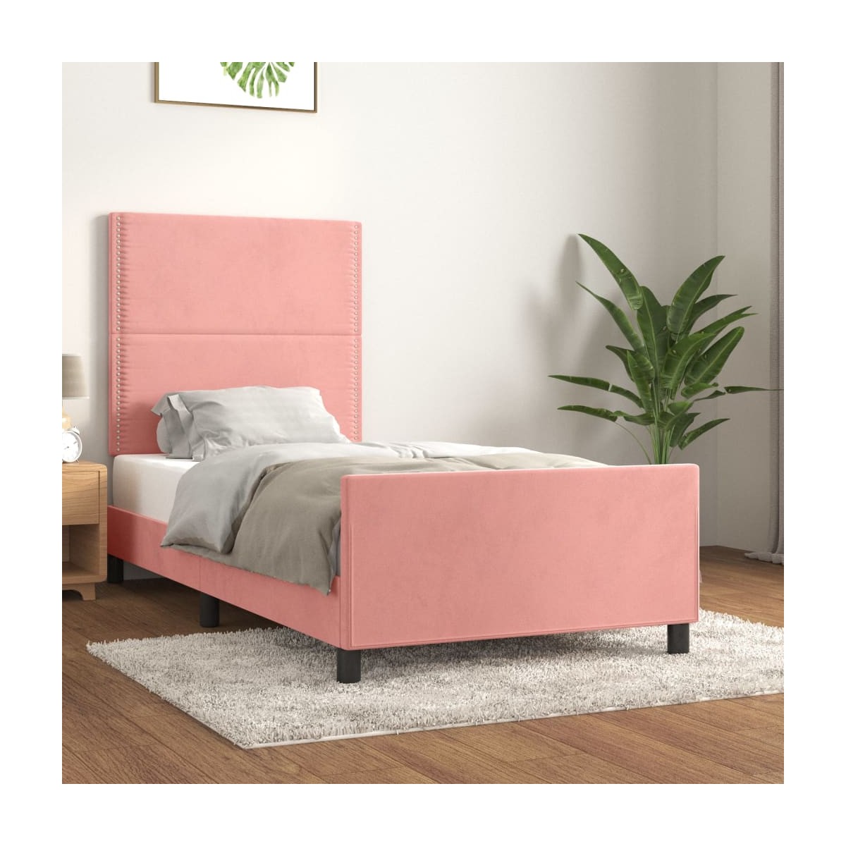 ¡Consigue un sueño más reparador con esta estructura de cama con cabecero! Es un aporte acogedor para cualquier dormitorio. Terciopelo suave: El terciopelo es una tela suave y lujosa, reconocida por su denso pelo de fibras cortadas de forma uniforme que tienen una suave pelusa. La tela de terciopelo posee un característico y suave tacto, lo que hace que sea cómoda al tacto.Altura regulable: El cabecero de la cama es ajustable en altura según tus preferencias.Patas de apoyo: La cama se apoya en patas robustas, que garantizan su estabilidad, seguridad y firmeza.Listones robustos: Los listones de madera contrachapada proporcionan una buena distribución del peso, lo que garantiza que el colchón se mantenga en tu sitio con cada giro y vuelta del cuerpo mientras duermes.Excelente apoyo: El cabecero de la cama te proporciona un excelente apoyo para la espalda mientras estás sentado en la cama para leer o ver la televisión. Nota:La entrega incluye solo una estructura de cama. El colchón no está incluido. Puedes echar un vistazo en nuestra tienda para buscar colchones a juego.Cada producto viene con un manual de montaje en la caja para facilitar el montaje.
