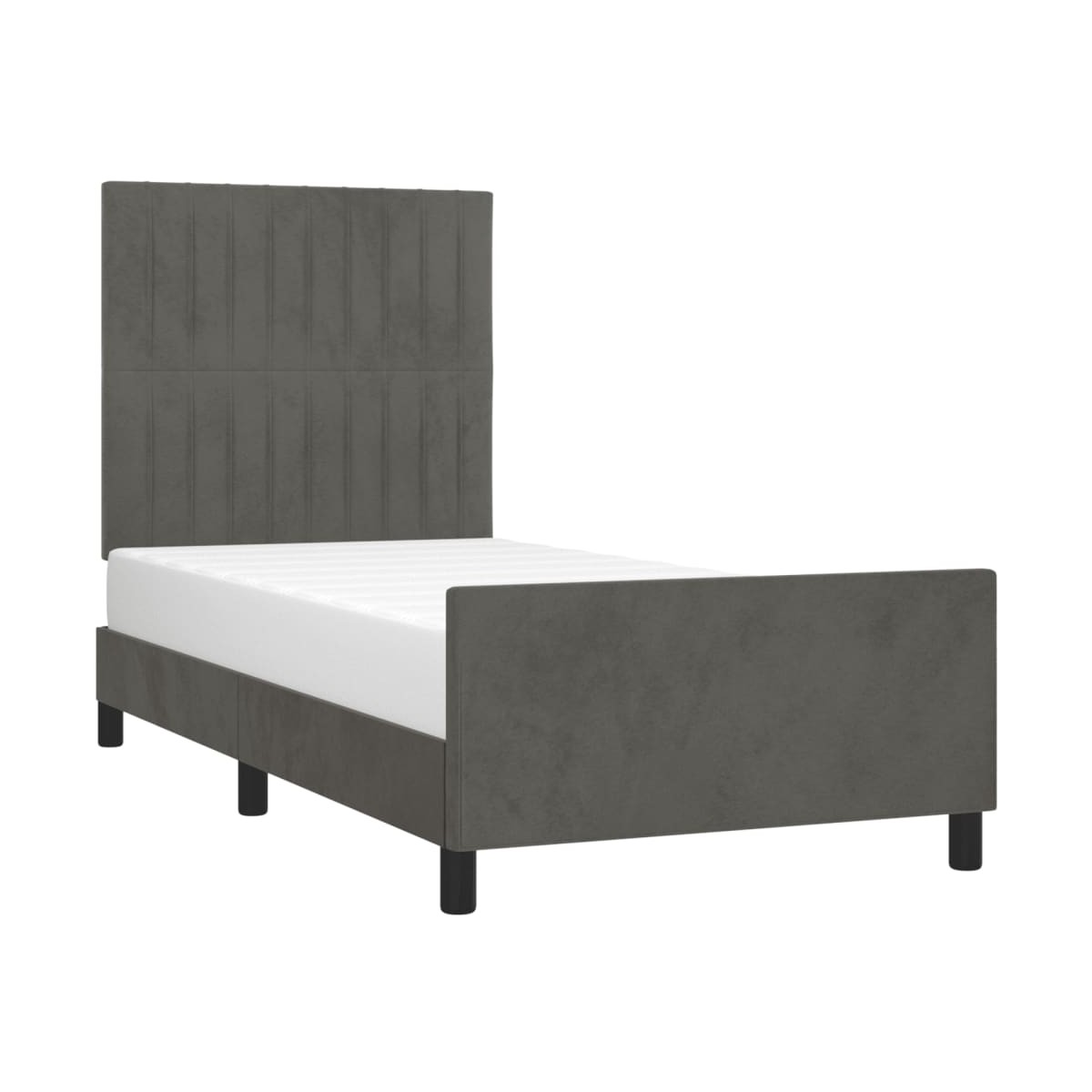 ¡Consigue un sueño más reparador con esta estructura de cama con cabecero! Es un aporte acogedor para cualquier dormitorio. Terciopelo suave: El terciopelo es una tela suave y lujosa, reconocida por su denso pelo de fibras cortadas de forma uniforme que tienen una suave pelusa. La tela de terciopelo posee un característico y suave tacto, lo que hace que sea cómoda al tacto.Altura regulable: El cabecero de la cama es ajustable en altura según tus preferencias.Patas de apoyo: La cama se apoya en patas robustas, que garantizan su estabilidad, seguridad y firmeza.Listones robustos: Los listones de madera contrachapada proporcionan una buena distribución del peso, lo que garantiza que el colchón se mantenga en tu sitio con cada giro y vuelta del cuerpo mientras duermes.Excelente apoyo: El cabecero de la cama te proporciona un excelente apoyo para la espalda mientras estás sentado en la cama para leer o ver la televisión. Nota:La entrega incluye solo una estructura de cama. El colchón no está incluido. Puedes echar un vistazo en nuestra tienda para buscar colchones a juego.Cada producto viene con un manual de montaje en la caja para facilitar el montaje.