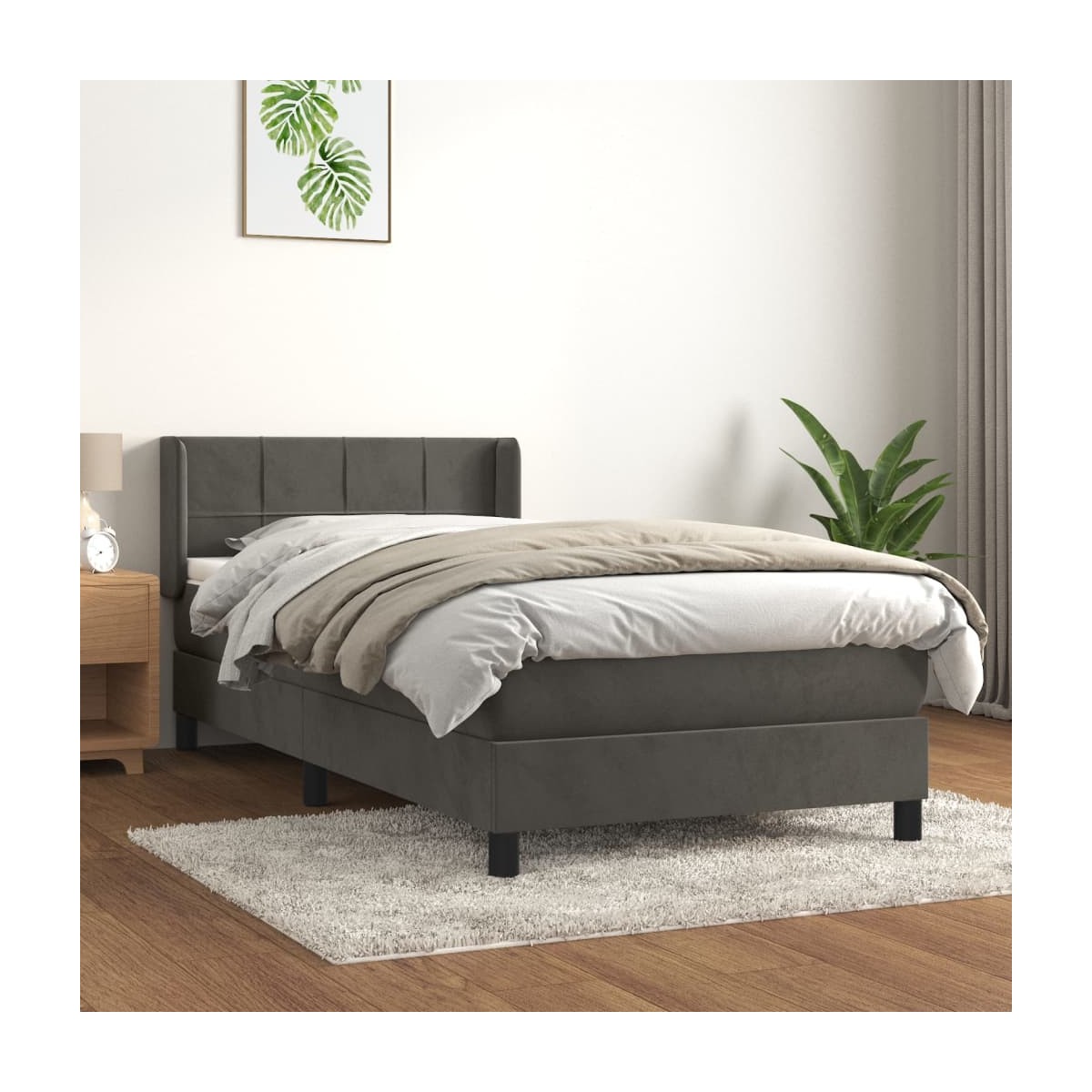 Utiliza esta cama de muelles para disfrutar de un sueño reparador. Te ofrece la máxima relajación y un sueño placentero. Terciopelo suave: El terciopelo es una tela suave y lujosa, reconocida por su denso pelo de fibras cortadas de forma uniforme que tienen una suave pelusa. La tela de terciopelo posee un característico y suave tacto, lo que hace que sea cómoda al tacto.Cabecero práctico: El cabecero de la cama es ajustable en altura según tus preferencias. El cabecero de la cama te proporciona un excelente apoyo para la espalda mientras estás sentado en la cama para leer o ver la televisión.Colchón de muelles ensacados: El muelle ensacado individual incorporado es conocido por su altísima calidad, al tiempo que garantiza un alto nivel de durabilidad y adaptabilidad. Puede absorber eficazmente el ruido y los golpes causados por los lanzamientos y los giros.Soporte de dureza media: El colchón de la cama proporciona perfectamente una mayor estabilidad y el nivel justo de firmeza sin sacrificar la comodidad. Por tanto, es ideal para quienes duermen de espaldas o boca abajo.Protector de colchón respetuoso con la piel: El protector de colchón tiene una funda de tejido resistente y respetuoso con la piel, que lo hace suave y confortable. Nota:Por razones de higiene, el colchón no puede devolverse si se ha quitado o abierto el embalaje.Cada producto viene con un manual de montaje en la caja para facilitar el montaje.
