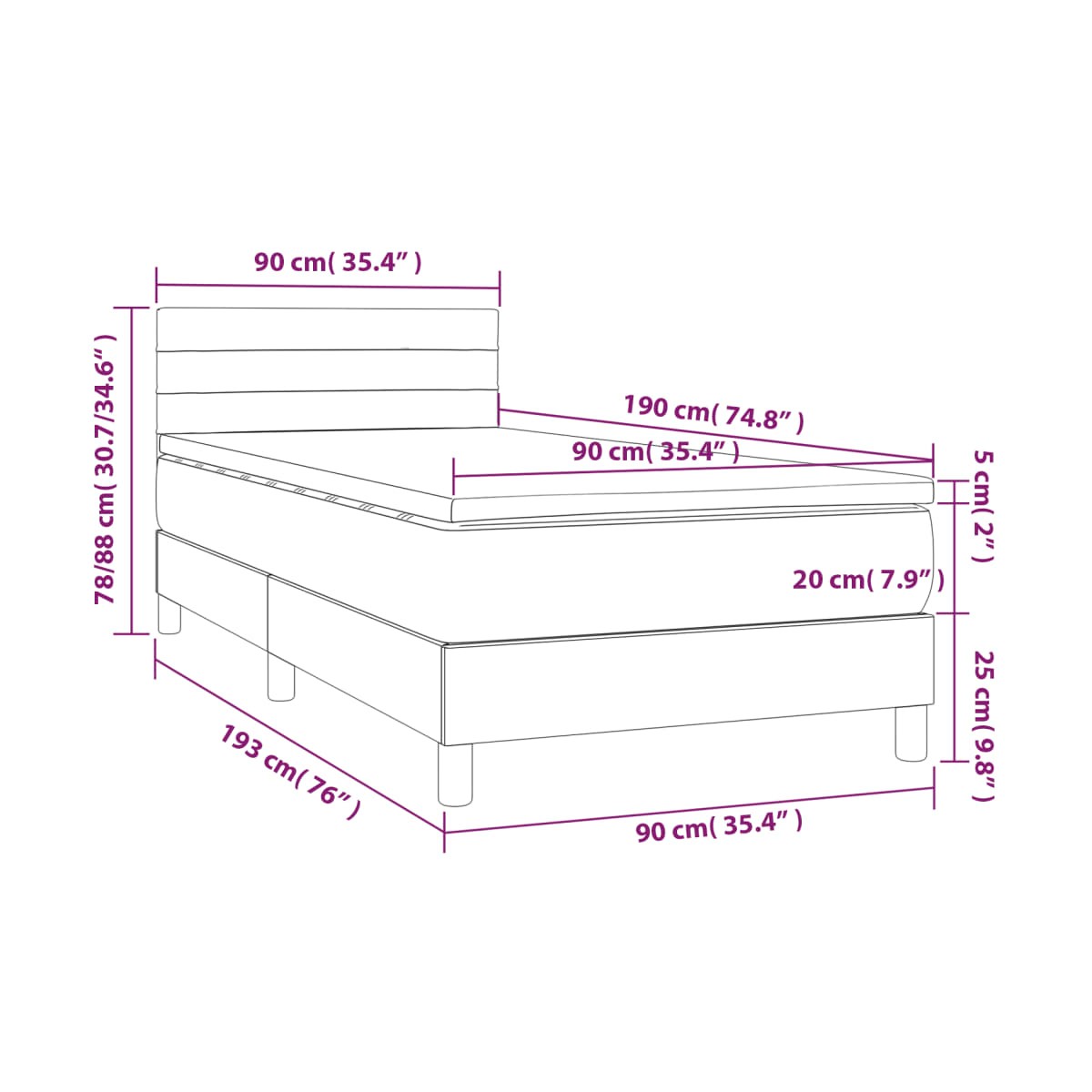 - Dimensiones: 90 x 190 x 20 cm (ancho x largo x alto)