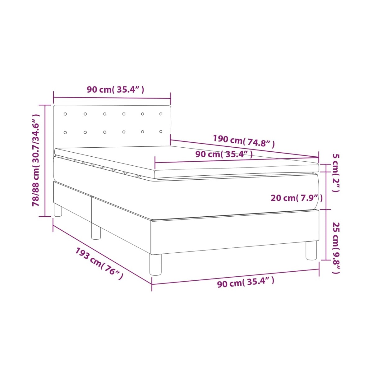 - Dimensiones: 90 x 190 x 20 cm (ancho x largo x alto)