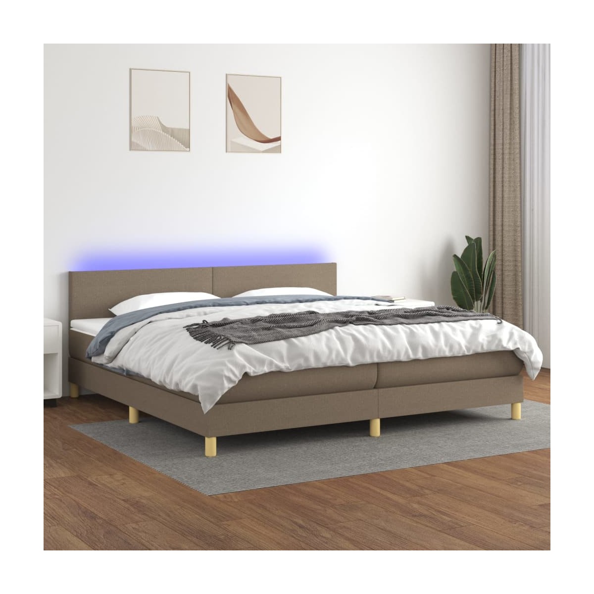 Utiliza esta cama box spring con colchón y LED para disfrutar de un sueño reparador. Es el centro de atención de tu dormitorio. Material de primera calidad: La tela posee un aspecto sencillo y limpio, y es transpirable y duradera.Cabecero práctico: El cabecero de la cama es ajustable en altura según tus preferencias. El cabecero de la cama te proporciona un excelente apoyo para la espalda mientras estás sentado en la cama para leer o ver la televisión.Tira de LED de colores: Alegra la oscuridad con luces LED de colores.Colchón de muelles ensacados: El muelle ensacado individual incorporado es conocido por su altísima calidad, al tiempo que garantiza un alto nivel de durabilidad y adaptabilidad. Puede absorber eficazmente el ruido y los golpes causados por los lanzamientos y los giros.Protector de colchón respetuoso con la piel: El protector de colchón tiene una funda de tejido resistente y respetuoso con la piel, que lo hace suave y confortable. Nota:Por razones de higiene, el colchón no puede devolverse si se ha quitado o abierto el embalaje.Cada producto viene con un manual de montaje en la caja para facilitar el montaje.Únicamente puedes cortar por la parte con el símbolo de las tijeras y únicamente la parte con el USB seguirá funcionando como antes.El producto tiene un conector USB, pero no se incluye la fuente de alimentación USB de 5 V certificada.