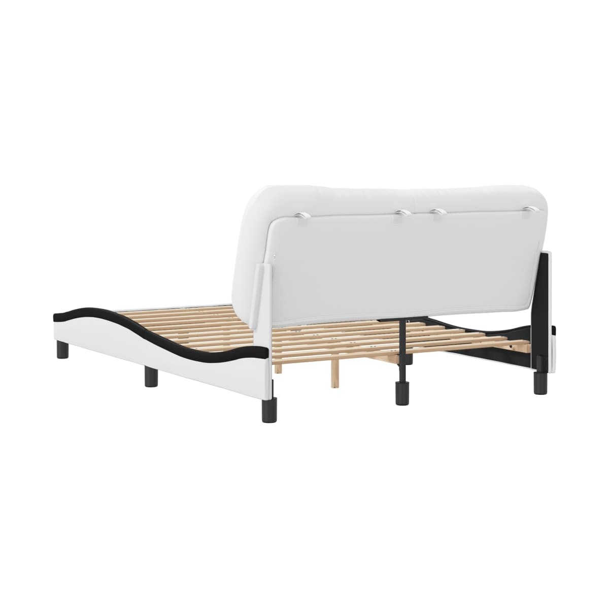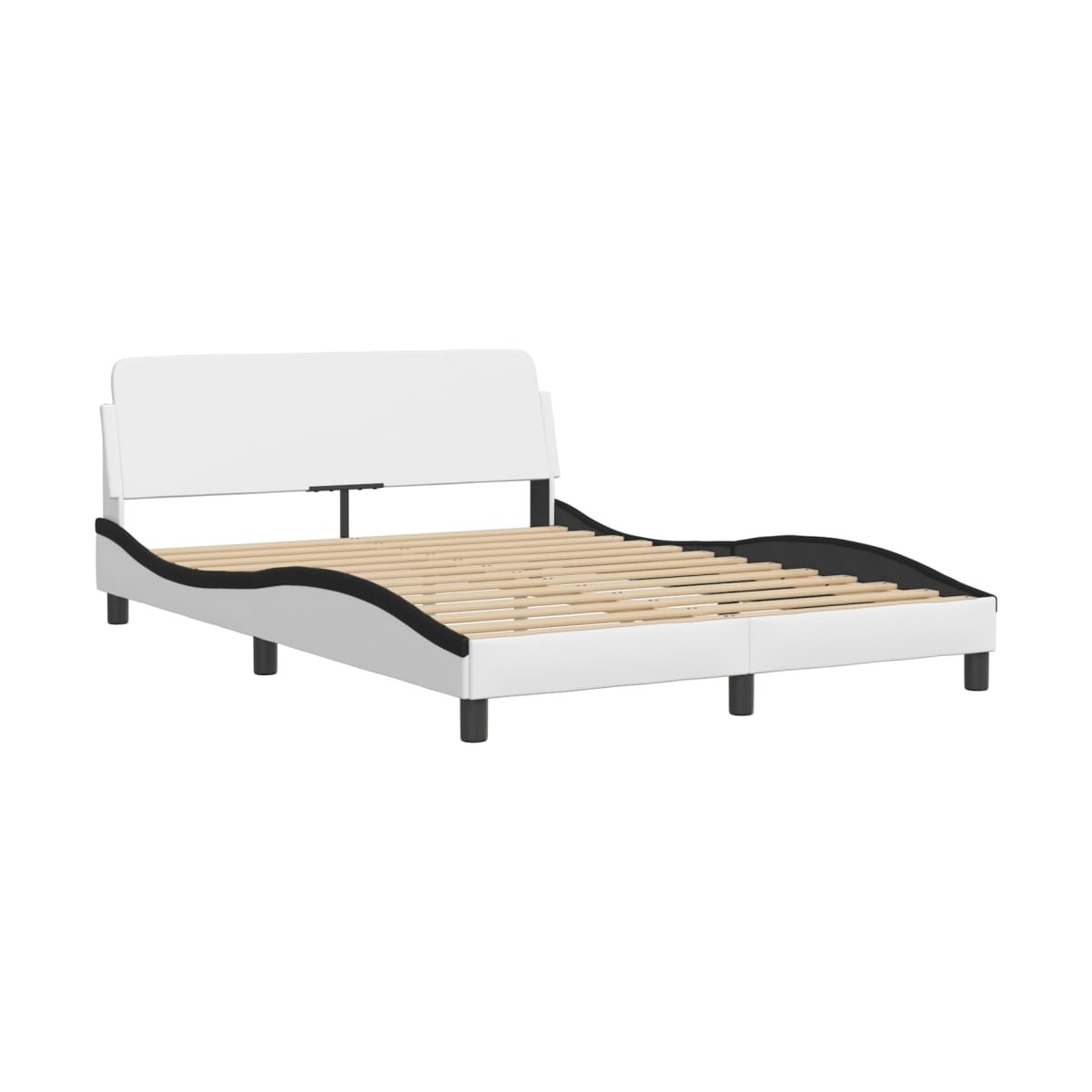 ¡Consigue un sueño más reparador con esta estructura de cama con cabecero! Es un aporte acogedor para cualquier dormitorio. Material duradero: El cuero sintético de primera calidad es un material muy duradero. Es resistente a las manchas, por lo que es fácil de limpiar con un paño húmedo. Además, la superficie lisa da un aspecto lujoso y la belleza del cuero auténtico.Listones robustos: Los listones de madera contrachapada proporcionan una buena distribución del peso, lo que garantiza que el colchón se mantenga en tu sitio con cada giro y vuelta del cuerpo mientras duermes.Excelente soporte: El cabecero acolchado está relleno de fibra PP para una comodidad ultrasuave y óptima, lo que te brinda un excelente soporte para la espalda mientras estás sentado en la cama para leer o ver la televisión.Diseño lateral ondulado: El look ondulado de la estructura de la cama es elegante y sofisticado, agregando un toque moderno y elegante a tu decoración, convirtiéndolo en el foco de atención de tu dormitorio. Información útil:El colchón no está incluido con la cama. Disponemos de una variada selección de colchones. Puedes echar un vistazo a nuestra tienda para buscar el colchón correspondiente.