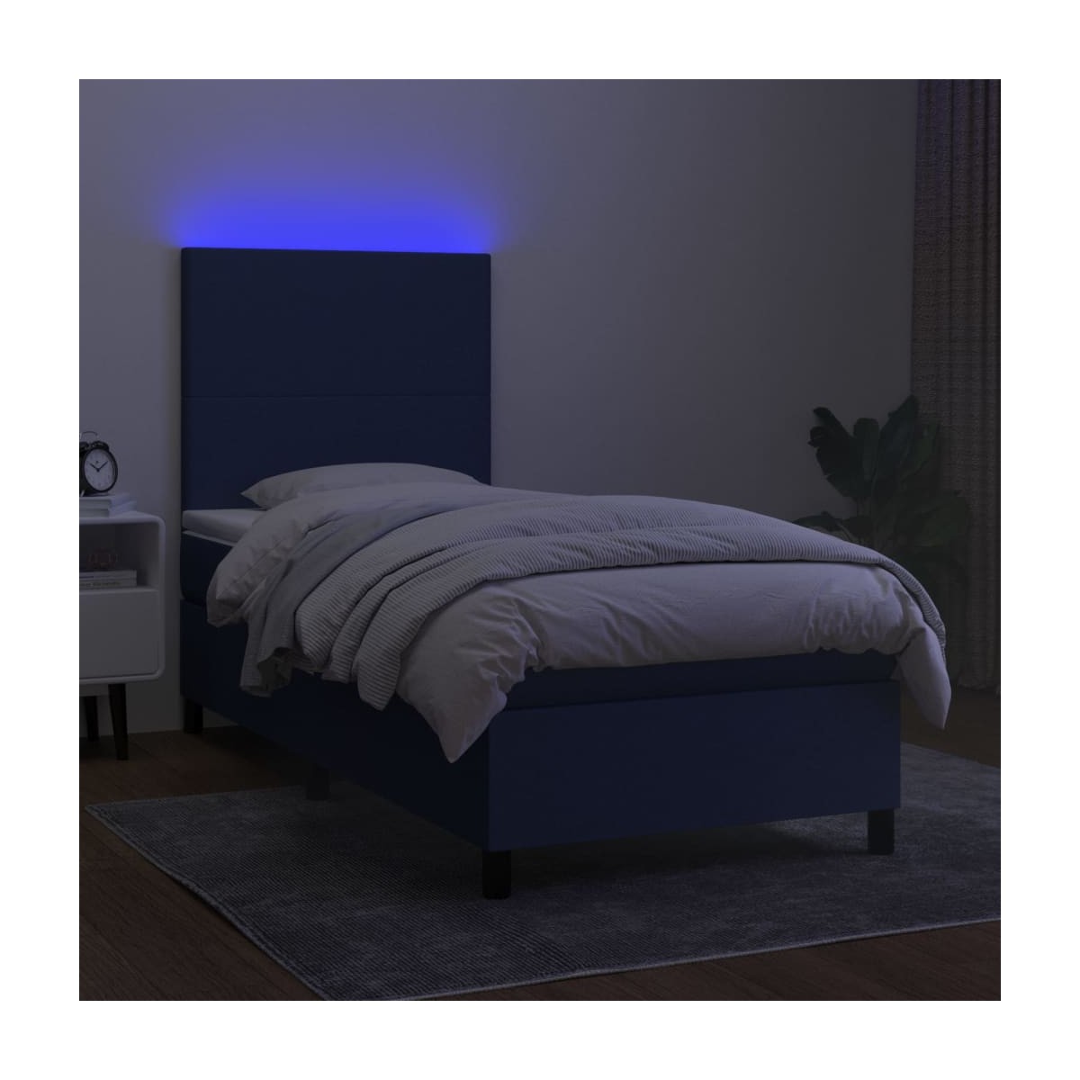 Utiliza esta cama box spring con colchón y LED para disfrutar de un sueño reparador. Es el centro de atención de tu dormitorio. Material de primera calidad: La tela posee un aspecto sencillo y limpio, y es transpirable y duradera.Cabecero práctico: El cabecero de la cama es ajustable en altura según tus preferencias. El cabecero de la cama te proporciona un excelente apoyo para la espalda mientras estás sentado en la cama para leer o ver la televisión.Tira de LED de colores: Alegra la oscuridad con luces LED de colores.Colchón de muelles ensacados: El muelle ensacado individual incorporado es conocido por su altísima calidad, al tiempo que garantiza un alto nivel de durabilidad y adaptabilidad. Puede absorber eficazmente el ruido y los golpes causados por los lanzamientos y los giros.Protector de colchón respetuoso con la piel: El protector de colchón tiene una funda de tejido resistente y respetuoso con la piel, que lo hace suave y confortable. Nota:Por razones de higiene, el colchón no puede devolverse si se ha quitado o abierto el embalaje.Únicamente puedes cortar por la parte con el símbolo de las tijeras y únicamente la parte con el USB seguirá funcionando como antes.Cada producto viene con un manual de montaje en la caja para facilitar el montaje.El producto tiene un conector USB, pero no se incluye la fuente de alimentación USB de 5 V certificada.