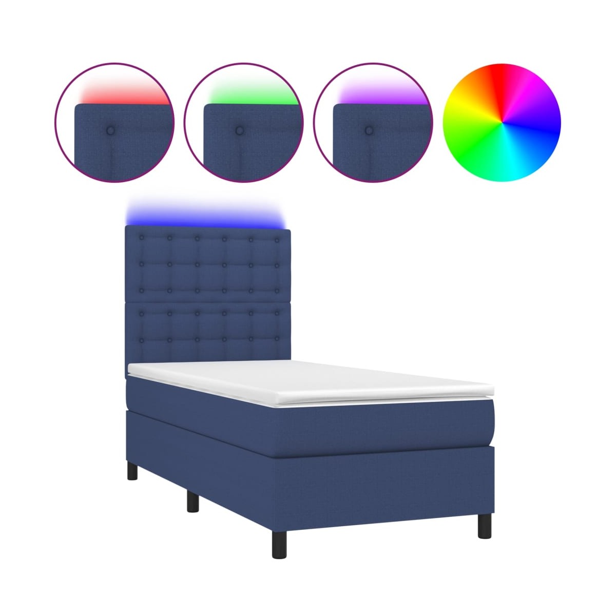 Utiliza esta cama box spring con colchón y LED para disfrutar de un sueño reparador. Es el centro de atención de tu dormitorio. Material de primera calidad: La tela posee un aspecto sencillo y limpio, y es transpirable y duradera.Cabecero práctico: El cabecero de la cama es ajustable en altura según tus preferencias. El cabecero de la cama te proporciona un excelente apoyo para la espalda mientras estás sentado en la cama para leer o ver la televisión.Tira de LED de colores: Alegra la oscuridad con luces LED de colores.Colchón de muelles ensacados: El muelle ensacado individual incorporado es conocido por su altísima calidad, al tiempo que garantiza un alto nivel de durabilidad y adaptabilidad. Puede absorber eficazmente el ruido y los golpes causados por los lanzamientos y los giros.Protector de colchón respetuoso con la piel: El protector de colchón tiene una funda de tejido resistente y respetuoso con la piel, que lo hace suave y confortable. Nota:Por razones de higiene, el colchón no puede devolverse si se ha quitado o abierto el embalaje.Únicamente puedes cortar por la parte con el símbolo de las tijeras y únicamente la parte con el USB seguirá funcionando como antes.Cada producto viene con un manual de montaje en la caja para facilitar el montaje.El producto tiene un conector USB, pero no se incluye la fuente de alimentación USB de 5 V certificada.