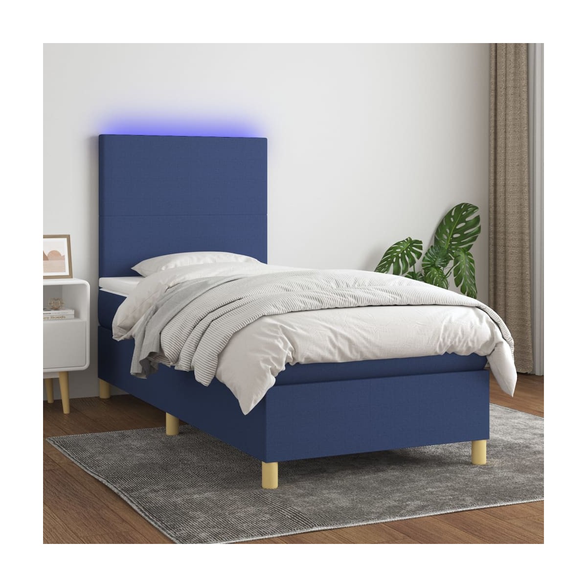 Utiliza esta cama box spring con colchón y LED para disfrutar de un sueño reparador. Es el centro de atención de tu dormitorio. Material de primera calidad: La tela posee un aspecto sencillo y limpio, y es transpirable y duradera.Cabecero práctico: El cabecero de la cama es ajustable en altura según tus preferencias. El cabecero de la cama te proporciona un excelente apoyo para la espalda mientras estás sentado en la cama para leer o ver la televisión.Tira de LED de colores: Alegra la oscuridad con luces LED de colores.Colchón de muelles ensacados: El muelle ensacado individual incorporado es conocido por su altísima calidad, al tiempo que garantiza un alto nivel de durabilidad y adaptabilidad. Puede absorber eficazmente el ruido y los golpes causados por los lanzamientos y los giros.Protector de colchón respetuoso con la piel: El protector de colchón tiene una funda de tejido resistente y respetuoso con la piel, que lo hace suave y confortable. Nota:Por razones de higiene, el colchón no puede devolverse si se ha quitado o abierto el embalaje.Únicamente puedes cortar por la parte con el símbolo de las tijeras y únicamente la parte con el USB seguirá funcionando como antes.Cada producto viene con un manual de montaje en la caja para facilitar el montaje.El producto tiene un conector USB, pero no se incluye la fuente de alimentación USB de 5 V certificada.