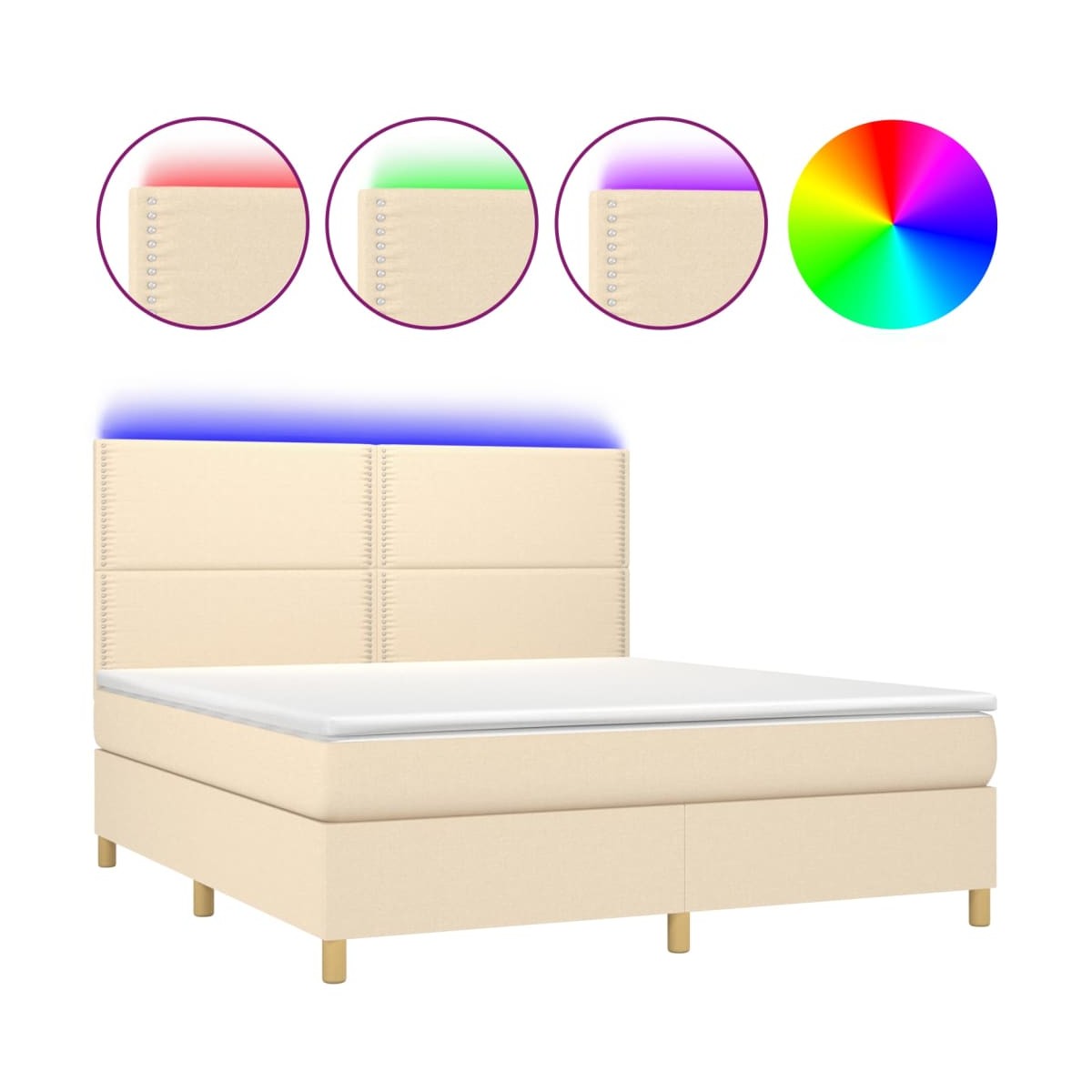 Utiliza esta cama box spring con colchón y LED para disfrutar de un sueño reparador. Es el centro de atención de tu dormitorio. Material de primera calidad: La tela posee un aspecto sencillo y limpio, y es transpirable y duradera.Cabecero práctico: El cabecero de la cama es ajustable en altura según tus preferencias. El cabecero de la cama te proporciona un excelente apoyo para la espalda mientras estás sentado en la cama para leer o ver la televisión.Tira de LED de colores: Alegra la oscuridad con luces LED de colores.Colchón de muelles ensacados: El muelle ensacado individual incorporado es conocido por su altísima calidad, al tiempo que garantiza un alto nivel de durabilidad y adaptabilidad. Puede absorber eficazmente el ruido y los golpes causados por los lanzamientos y los giros.Protector de colchón respetuoso con la piel: El protector de colchón tiene una funda de tejido resistente y respetuoso con la piel, que lo hace suave y confortable. Nota:Por razones de higiene, el colchón no puede devolverse si se ha quitado o abierto el embalaje.Únicamente puedes cortar por la parte con el símbolo de las tijeras y únicamente la parte con el USB seguirá funcionando como antes.Cada producto viene con un manual de montaje en la caja para facilitar el montaje.El producto tiene un conector USB, pero no se incluye la fuente de alimentación USB de 5 V certificada.