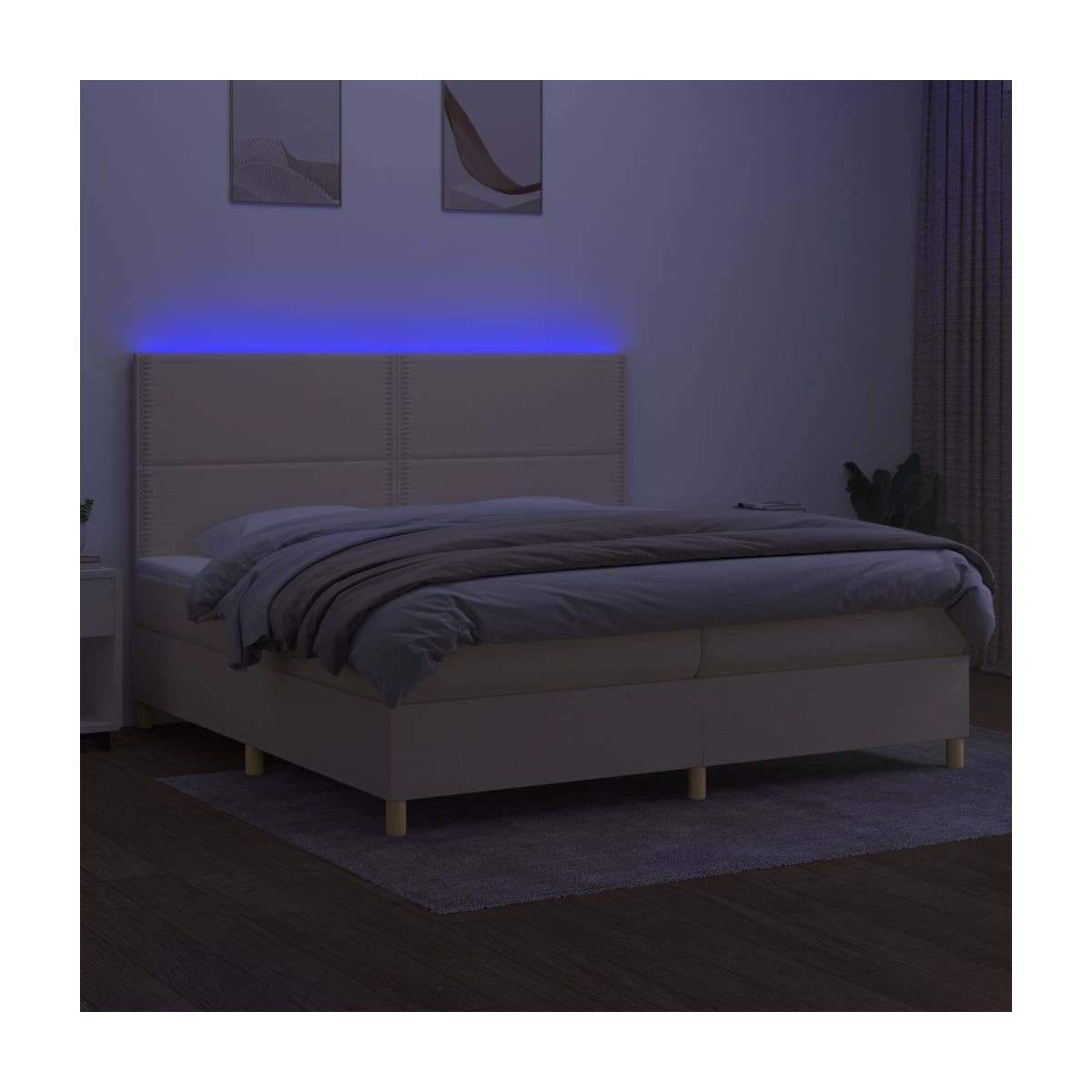 Utiliza esta cama box spring con colchón y LED para disfrutar de un sueño reparador. Es el centro de atención de tu dormitorio. Material de primera calidad: La tela posee un aspecto sencillo y limpio, y es transpirable y duradera.Cabecero práctico: El cabecero de la cama es ajustable en altura según tus preferencias. El cabecero de la cama te proporciona un excelente apoyo para la espalda mientras estás sentado en la cama para leer o ver la televisión.Tira de LED de colores: Alegra la oscuridad con luces LED de colores.Colchón de muelles ensacados: El muelle ensacado individual incorporado es conocido por su altísima calidad, al tiempo que garantiza un alto nivel de durabilidad y adaptabilidad. Puede absorber eficazmente el ruido y los golpes causados por los lanzamientos y los giros.Protector de colchón respetuoso con la piel: El protector de colchón tiene una funda de tejido resistente y respetuoso con la piel, que lo hace suave y confortable. Nota:Por razones de higiene, el colchón no puede devolverse si se ha quitado o abierto el embalaje.Únicamente puedes cortar por la parte con el símbolo de las tijeras y únicamente la parte con el USB seguirá funcionando como antes.Cada producto viene con un manual de montaje en la caja para facilitar el montaje.El producto tiene un conector USB, pero no se incluye la fuente de alimentación USB de 5 V certificada.