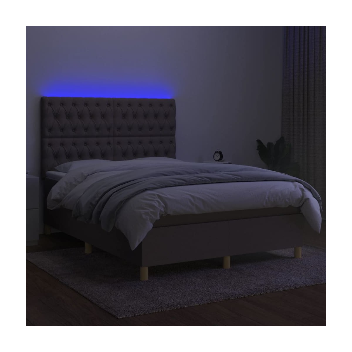 Utiliza esta cama box spring con colchón y LED para disfrutar de un sueño reparador. Es el centro de atención de tu dormitorio. Material de primera calidad: La tela posee un aspecto sencillo y limpio, y es transpirable y duradera.Cabecero práctico: El cabecero de la cama es ajustable en altura según tus preferencias. El cabecero de la cama te proporciona un excelente apoyo para la espalda mientras estás sentado en la cama para leer o ver la televisión.Tira de LED de colores: Alegra la oscuridad con luces LED de colores.Colchón de muelles ensacados: El muelle ensacado individual incorporado es conocido por su altísima calidad, al tiempo que garantiza un alto nivel de durabilidad y adaptabilidad. Puede absorber eficazmente el ruido y los golpes causados por los lanzamientos y los giros.Protector de colchón respetuoso con la piel: El protector de colchón tiene una funda de tejido resistente y respetuoso con la piel, que lo hace suave y confortable. Nota:Por razones de higiene, el colchón no puede devolverse si se ha quitado o abierto el embalaje.Únicamente puedes cortar por la parte con el símbolo de las tijeras y únicamente la parte con el USB seguirá funcionando como antes.Cada producto viene con un manual de montaje en la caja para facilitar el montaje.El producto tiene un conector USB, pero no se incluye la fuente de alimentación USB de 5 V certificada.