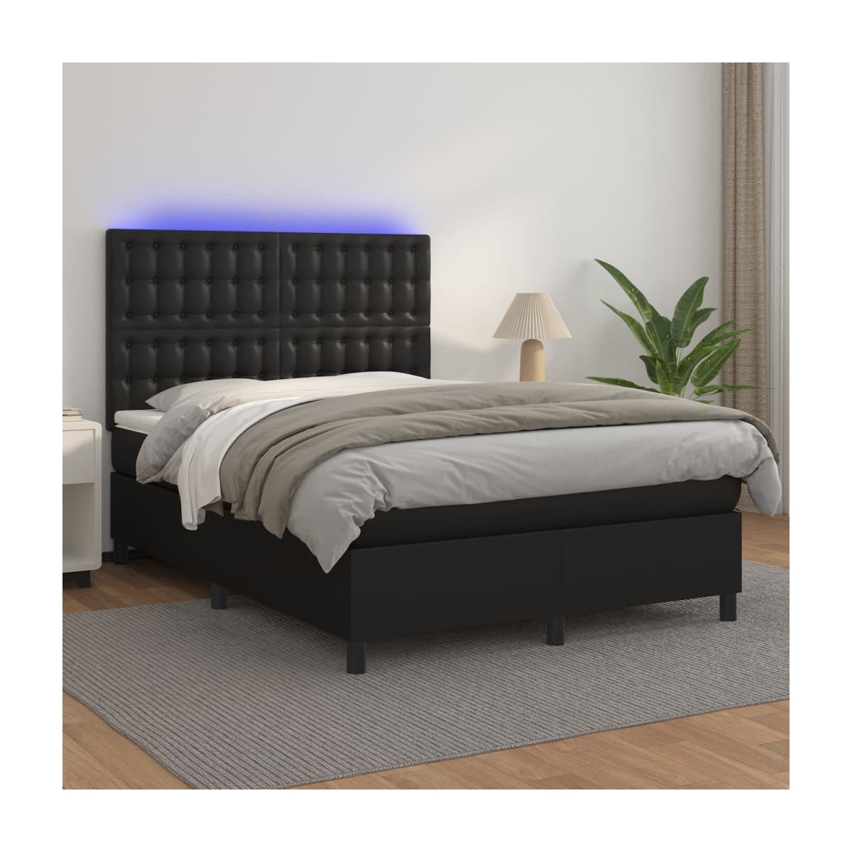 Utiliza esta cama box spring con colchón y LED para disfrutar de un sueño reparador. Es el centro de atención de tu dormitorio. Material duradero: El cuero sintético de primera calidad es un material muy duradero. Es resistente a las manchas, por lo que es fácil de limpiar con un paño húmedo. Además, la superficie lisa da un aspecto lujoso y la belleza del cuero auténtico.Cabecero práctico: El cabecero de la cama es ajustable en altura según tus preferencias. El cabecero de la cama te proporciona un excelente apoyo para la espalda mientras estás sentado en la cama para leer o ver la televisión.Tira de LED de colores: Alegra la oscuridad con luces LED de colores.Colchón de muelles ensacados: El muelle ensacado individual incorporado es conocido por su altísima calidad, al tiempo que garantiza un alto nivel de durabilidad y adaptabilidad. Puede absorber eficazmente el ruido y los golpes causados por los lanzamientos y los giros.Protector de colchón respetuoso con la piel: El protector de colchón tiene una funda de tejido resistente y respetuoso con la piel, que lo hace suave y confortable. Nota:Por razones de higiene, el colchón no puede devolverse si se ha quitado o abierto el embalaje.Únicamente puedes cortar por la parte con el símbolo de las tijeras y únicamente la parte con el USB seguirá funcionando como antes.Cada producto viene con un manual de montaje en la caja para facilitar el montaje.El producto tiene un conector USB, pero no se incluye la fuente de alimentación USB de 5 V certificada.