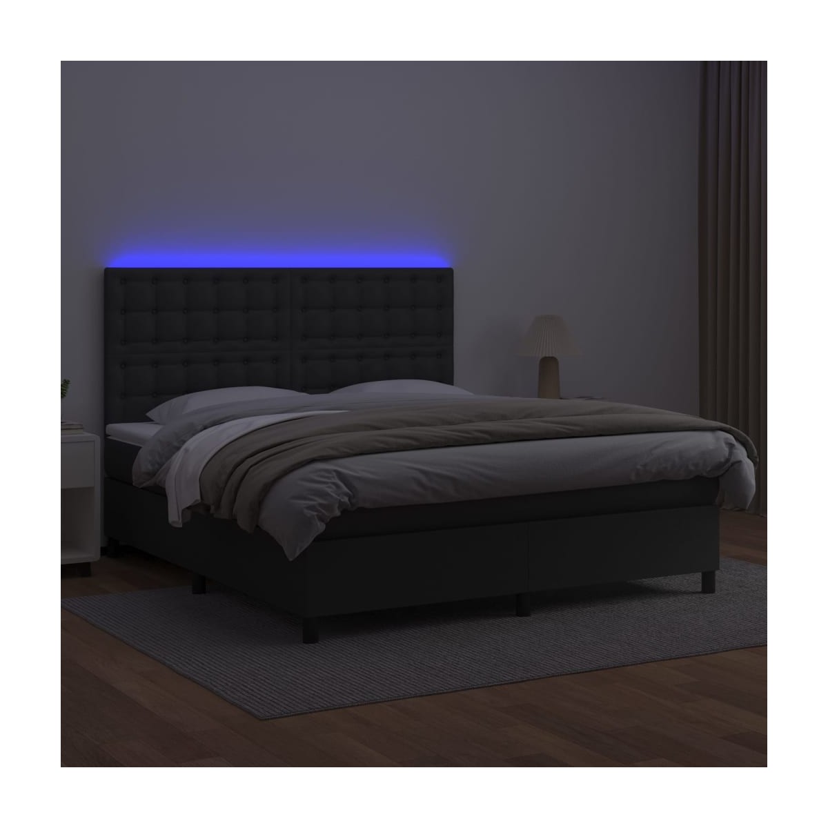 Utiliza esta cama box spring con colchón y LED para disfrutar de un sueño reparador. Es el centro de atención de tu dormitorio. Material duradero: El cuero sintético de primera calidad es un material muy duradero. Es resistente a las manchas, por lo que es fácil de limpiar con un paño húmedo. Además, la superficie lisa da un aspecto lujoso y la belleza del cuero auténtico.Cabecero práctico: El cabecero de la cama es ajustable en altura según tus preferencias. El cabecero de la cama te proporciona un excelente apoyo para la espalda mientras estás sentado en la cama para leer o ver la televisión.Tira de LED de colores: Alegra la oscuridad con luces LED de colores.Colchón de muelles ensacados: El muelle ensacado individual incorporado es conocido por su altísima calidad, al tiempo que garantiza un alto nivel de durabilidad y adaptabilidad. Puede absorber eficazmente el ruido y los golpes causados por los lanzamientos y los giros.Protector de colchón respetuoso con la piel: El protector de colchón tiene una funda de tejido resistente y respetuoso con la piel, que lo hace suave y confortable. Nota:Por razones de higiene, el colchón no puede devolverse si se ha quitado o abierto el embalaje.Únicamente puedes cortar por la parte con el símbolo de las tijeras y únicamente la parte con el USB seguirá funcionando como antes.Cada producto viene con un manual de montaje en la caja para facilitar el montaje.El producto tiene un conector USB, pero no se incluye la fuente de alimentación USB de 5 V certificada.
