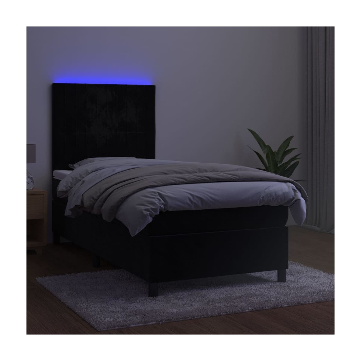 Utiliza esta cama box spring con colchón y LED para disfrutar de un sueño reparador. Es el centro de atención de tu dormitorio. Terciopelo suave: El terciopelo es una tela suave y lujosa, reconocida por su denso pelo de fibras cortadas de forma uniforme que tienen una suave pelusa. La tela de terciopelo posee un característico y suave tacto, lo que hace que sea cómoda al tacto.Cabecero práctico: El cabecero de la cama es ajustable en altura según tus preferencias. El cabecero de la cama te proporciona un excelente apoyo para la espalda mientras estás sentado en la cama para leer o ver la televisión.Tira de LED de colores: Alegra la oscuridad con luces LED de colores.Colchón de muelles ensacados: El muelle ensacado individual incorporado es conocido por su altísima calidad, al tiempo que garantiza un alto nivel de durabilidad y adaptabilidad. Puede absorber eficazmente el ruido y los golpes causados por los lanzamientos y los giros.Protector de colchón respetuoso con la piel: El protector de colchón tiene una funda de tejido resistente y respetuoso con la piel, que lo hace suave y confortable. Nota:Por razones de higiene, el colchón no puede devolverse si se ha quitado o abierto el embalaje.Únicamente puedes cortar por la parte con el símbolo de las tijeras y únicamente la parte con el USB seguirá funcionando como antes.Cada producto viene con un manual de montaje en la caja para facilitar el montaje.El producto tiene un conector USB, pero no se incluye la fuente de alimentación USB de 5 V certificada.