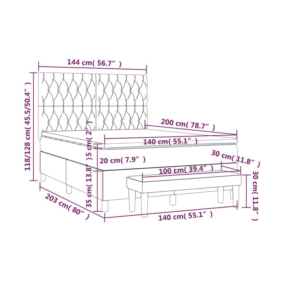 - Dimensiones: 203 x 144 x 118/128 cm (largo x ancho x alto)