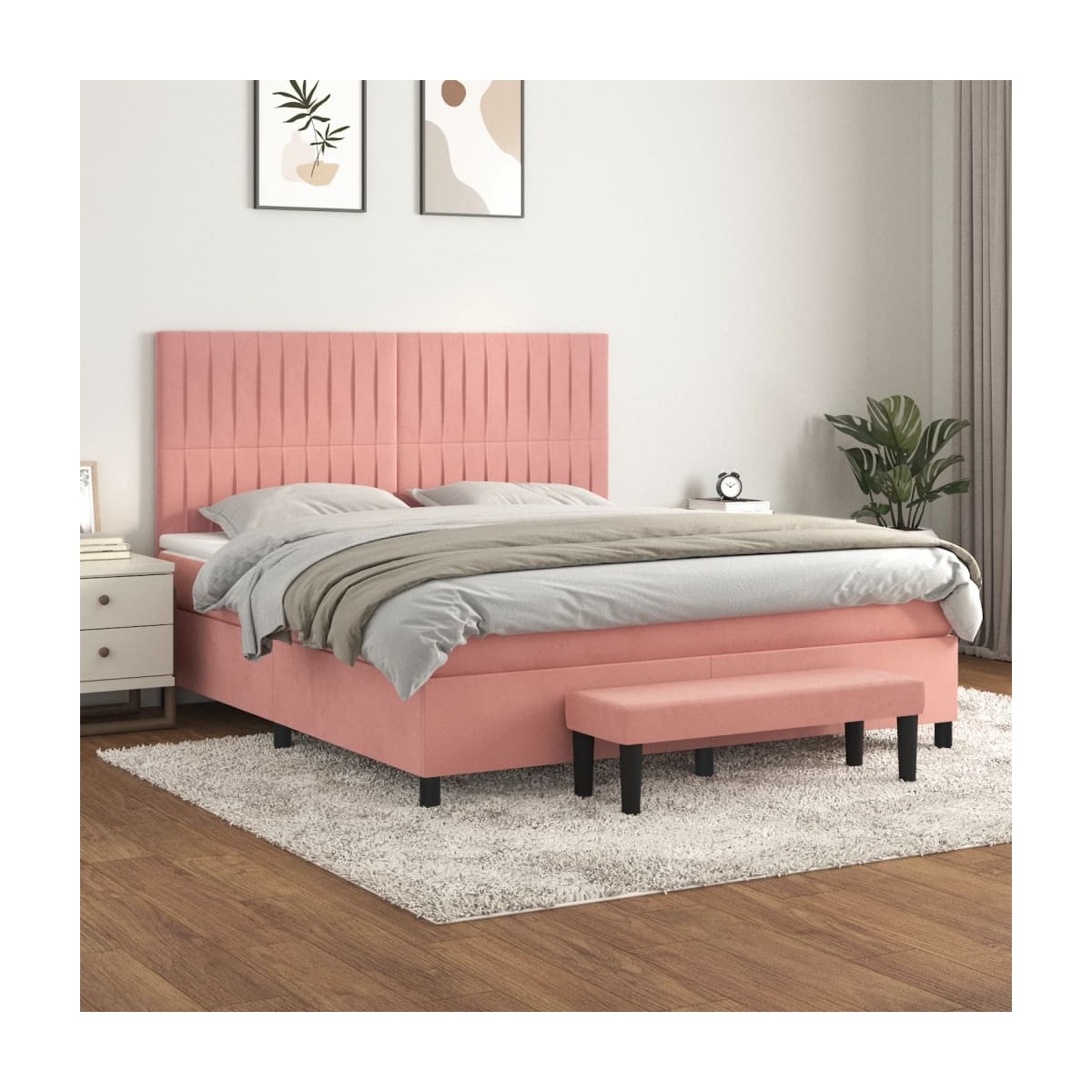 Utiliza esta cama de muelles para disfrutar de un sueño reparador. Te ofrece la máxima relajación y un sueño placentero. Terciopelo suave: El terciopelo es una tela suave y lujosa, reconocida por su denso pelo de fibras cortadas de forma uniforme que tienen una suave pelusa. La tela de terciopelo posee un característico y suave tacto, lo que hace que sea cómoda al tacto.Cabecero práctico: El cabecero de la cama es ajustable en altura según tus preferencias. El cabecero de la cama te proporciona un excelente apoyo para la espalda mientras estás sentado en la cama para leer o ver la televisión.Colchón de muelles ensacados: El muelle ensacado individual incorporado es conocido por su altísima calidad, al tiempo que garantiza un alto nivel de durabilidad y adaptabilidad. Puede absorber eficazmente el ruido y los golpes causados por los lanzamientos y los giros.Soporte de dureza media: El colchón de la cama proporciona perfectamente una mayor estabilidad y el nivel justo de firmeza sin sacrificar la comodidad. Por tanto, es ideal para quienes duermen de espaldas o boca abajo.Protector de colchón respetuoso con la piel: El protector de colchón tiene una funda de tejido resistente y respetuoso con la piel, que lo hace suave y confortable.Banco multifuncional: Este banco puede servir como asiento adicional en tu casa. Además, puede utilizarse como banco de pie de cama. Nota:Por razones de higiene, el colchón no puede devolverse si se ha quitado o abierto el embalaje.Cada producto viene con un manual de montaje en la caja para facilitar el montaje.