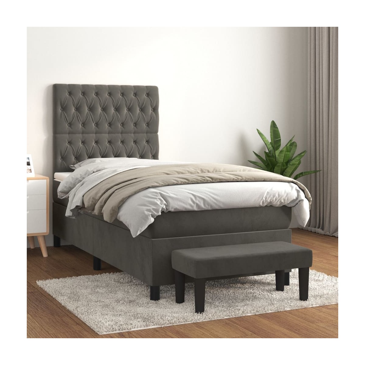 Utiliza esta cama de muelles para disfrutar de un sueño reparador. Te ofrece la máxima relajación y un sueño placentero. Terciopelo suave: El terciopelo es una tela suave y lujosa, reconocida por su denso pelo de fibras cortadas de forma uniforme que tienen una suave pelusa. La tela de terciopelo posee un característico y suave tacto, lo que hace que sea cómoda al tacto.Cabecero práctico: El cabecero de la cama es ajustable en altura según tus preferencias. El cabecero de la cama te proporciona un excelente apoyo para la espalda mientras estás sentado en la cama para leer o ver la televisión.Colchón de muelles ensacados: El muelle ensacado individual incorporado es conocido por su altísima calidad, al tiempo que garantiza un alto nivel de durabilidad y adaptabilidad. Puede absorber eficazmente el ruido y los golpes causados por los lanzamientos y los giros.Soporte de dureza media: El colchón de la cama proporciona perfectamente una mayor estabilidad y el nivel justo de firmeza sin sacrificar la comodidad. Por tanto, es ideal para quienes duermen de espaldas o boca abajo.Protector de colchón respetuoso con la piel: El protector de colchón tiene una funda de tejido resistente y respetuoso con la piel, que lo hace suave y confortable.Banco multifuncional: Este banco puede servir como asiento adicional en tu casa. Además, puede utilizarse como banco de pie de cama. Nota:Por razones de higiene, el colchón no puede devolverse si se ha quitado o abierto el embalaje.Cada producto viene con un manual de montaje en la caja para facilitar el montaje.
