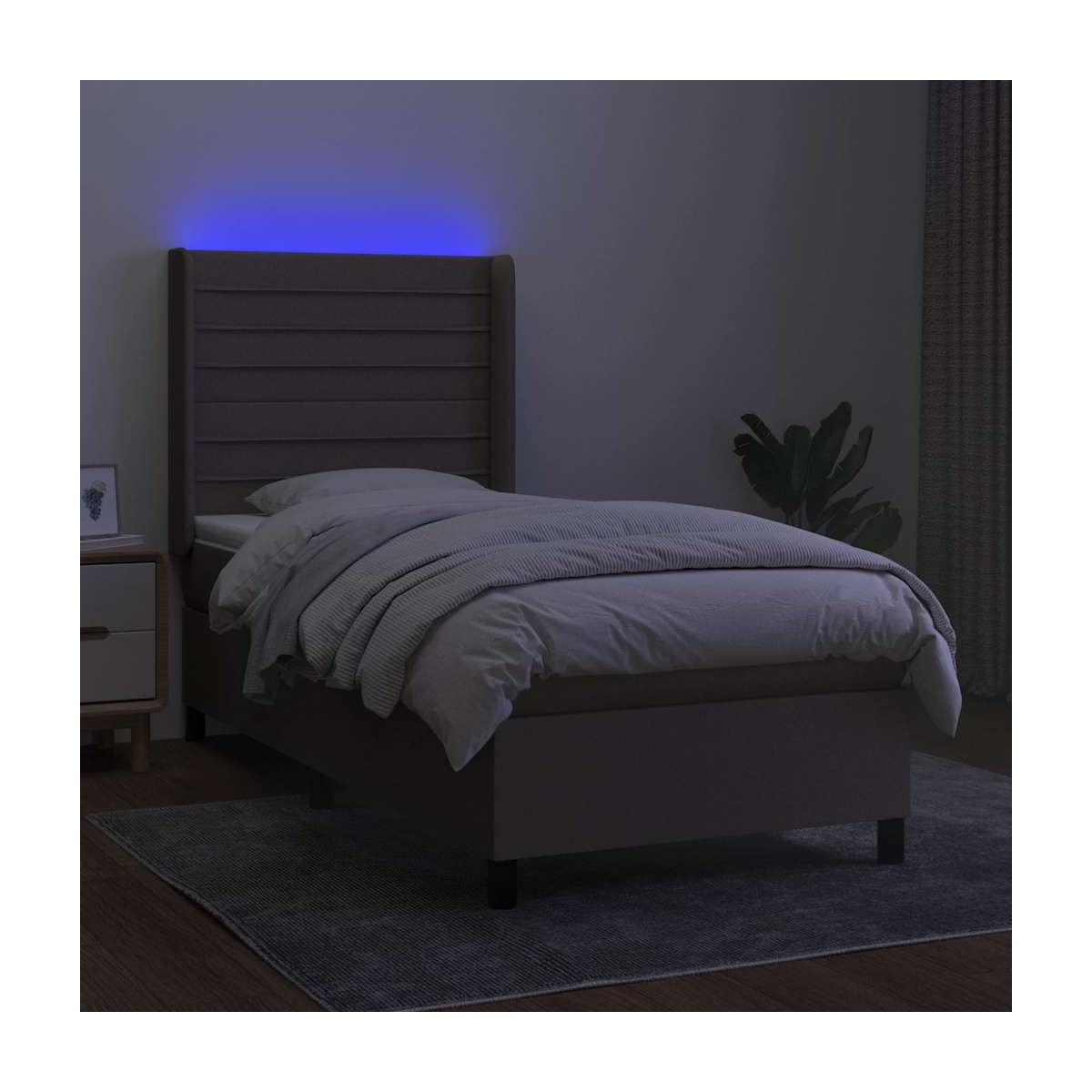 Utiliza esta cama tipo box spring con colchón y luces LED para disfrutar de un sueño reparador. Será el centro de atención del dormitorio. Material de primera calidad: La tela posee un aspecto sencillo y limpio, y es transpirable y duradera.Cabecero práctico: El cabecero de la cama es ajustable en altura según tus preferencias. El cabecero de la cama te proporciona un excelente apoyo para la espalda mientras estás sentado en la cama para leer o ver la televisión.Tira de LED de colores: Alegra la oscuridad con luces LED de colores.Colchón de muelles ensacados: El muelle ensacado individual incorporado es conocido por su altísima calidad, al tiempo que garantiza un alto nivel de durabilidad y adaptabilidad. Puede absorber eficazmente el ruido y los golpes causados por los lanzamientos y los giros.Protector de colchón respetuoso con la piel: El protector de colchón tiene una funda de tejido resistente y respetuoso con la piel, que lo hace suave y confortable. Nota: La lona impermeable no está incluidaPor razones de higiene, el colchón no puede devolverse si se ha quitado o abierto el embalaje.Únicamente puedes cortar por la parte con el símbolo de las tijeras y únicamente la parte con el USB seguirá funcionando como antes.Cada producto viene con un manual de montaje en la caja para facilitar el montaje.El producto tiene un conector USB, pero no se incluye la fuente de alimentación USB de 5 V certificada.