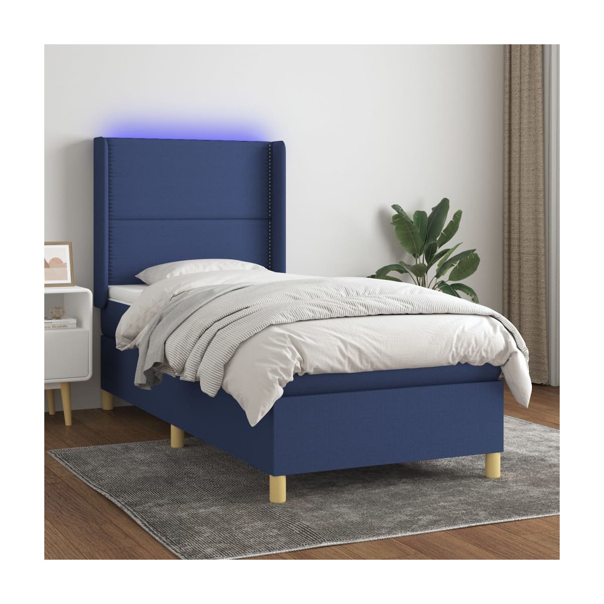 Utiliza esta cama tipo box spring con colchón y luces LED para disfrutar de un sueño reparador. Será el centro de atención del dormitorio. Material de primera calidad: La tela posee un aspecto sencillo y limpio, y es transpirable y duradera.Cabecero práctico: El cabecero de la cama es ajustable en altura según tus preferencias. El cabecero de la cama te proporciona un excelente apoyo para la espalda mientras estás sentado en la cama para leer o ver la televisión.Tira de LED de colores: Alegra la oscuridad con luces LED de colores.Colchón de muelles ensacados: El muelle ensacado individual incorporado es conocido por su altísima calidad, al tiempo que garantiza un alto nivel de durabilidad y adaptabilidad. Puede absorber eficazmente el ruido y los golpes causados por los lanzamientos y los giros.Protector de colchón respetuoso con la piel: El protector de colchón tiene una funda de tejido resistente y respetuoso con la piel, que lo hace suave y confortable. Nota: La lona impermeable no está incluidaPor razones de higiene, el colchón no puede devolverse si se ha quitado o abierto el embalaje.Únicamente puedes cortar por la parte con el símbolo de las tijeras y únicamente la parte con el USB seguirá funcionando como antes.Cada producto viene con un manual de montaje en la caja para facilitar el montaje.El producto tiene un conector USB, pero no se incluye la fuente de alimentación USB de 5 V certificada.