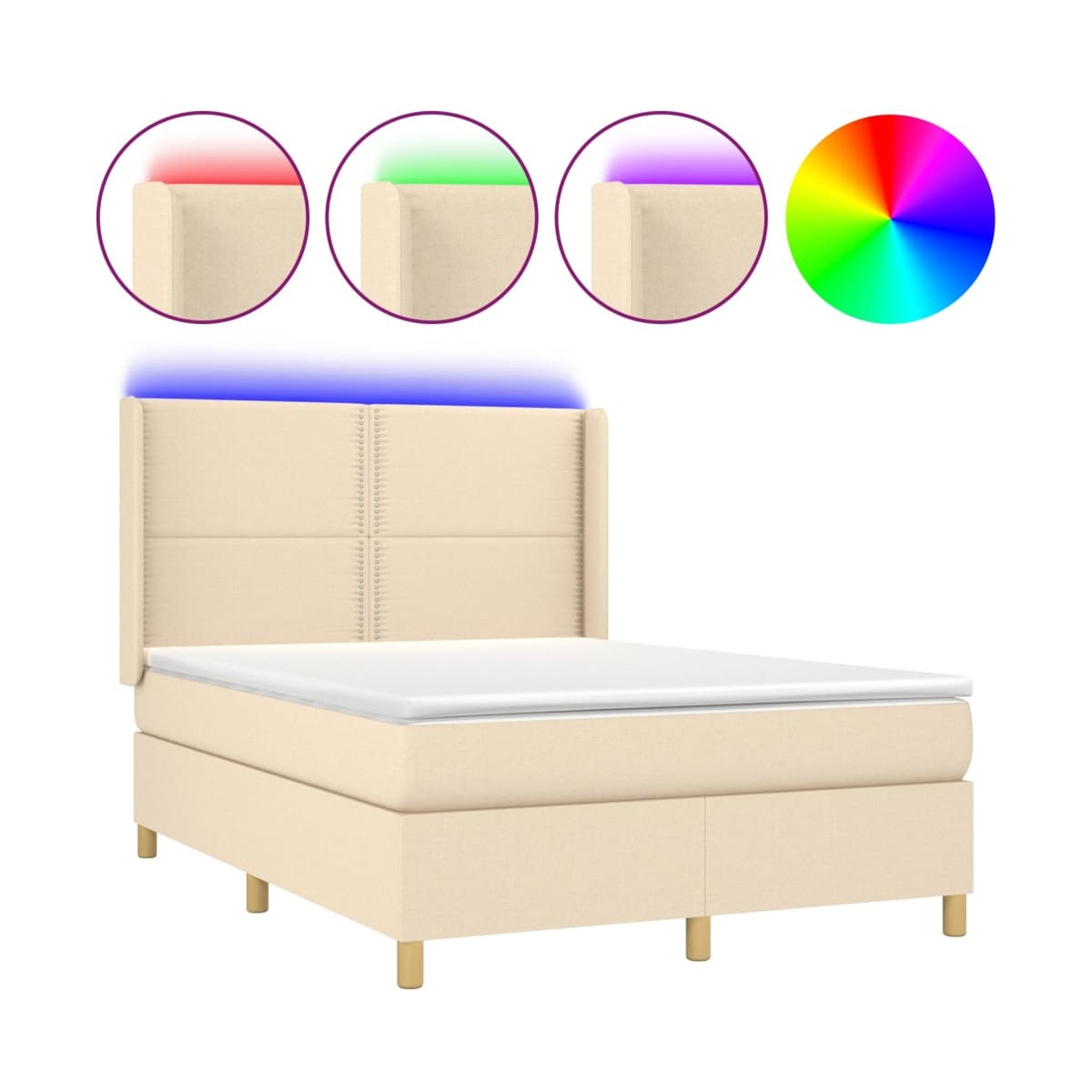 Utiliza esta cama tipo box spring con colchón y luces LED para disfrutar de un sueño reparador. Será el centro de atención del dormitorio. Material de primera calidad: La tela posee un aspecto sencillo y limpio, y es transpirable y duradera.Cabecero práctico: El cabecero de la cama es ajustable en altura según tus preferencias. El cabecero de la cama te proporciona un excelente apoyo para la espalda mientras estás sentado en la cama para leer o ver la televisión.Tira de LED de colores: Alegra la oscuridad con luces LED de colores.Colchón de muelles ensacados: El muelle ensacado individual incorporado es conocido por su altísima calidad, al tiempo que garantiza un alto nivel de durabilidad y adaptabilidad. Puede absorber eficazmente el ruido y los golpes causados por los lanzamientos y los giros.Protector de colchón respetuoso con la piel: El protector de colchón tiene una funda de tejido resistente y respetuoso con la piel, que lo hace suave y confortable. Nota: La lona impermeable no está incluidaPor razones de higiene, el colchón no puede devolverse si se ha quitado o abierto el embalaje.Únicamente puedes cortar por la parte con el símbolo de las tijeras y únicamente la parte con el USB seguirá funcionando como antes.Cada producto viene con un manual de montaje en la caja para facilitar el montaje.El producto tiene un conector USB, pero no se incluye la fuente de alimentación USB de 5 V certificada.