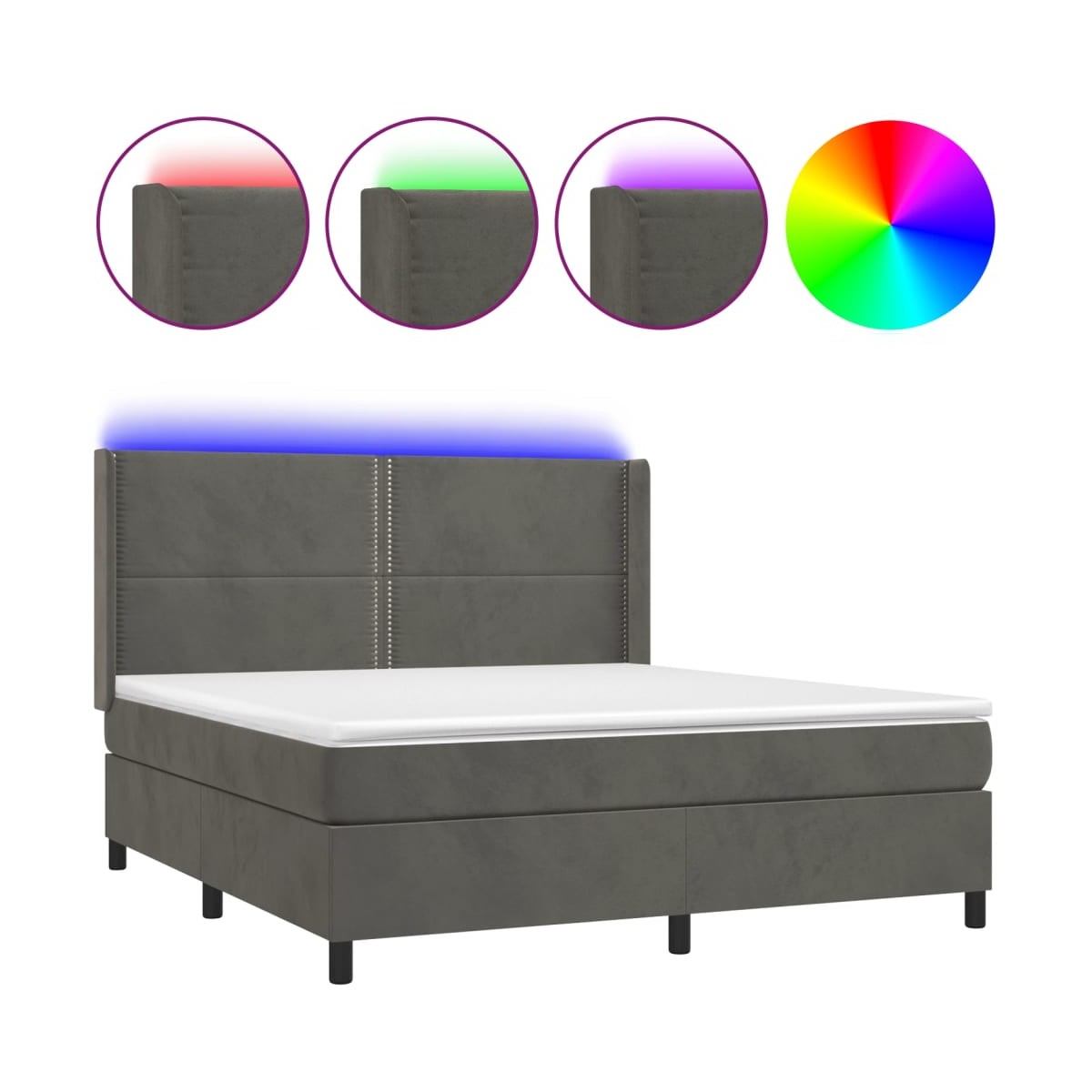 Utiliza esta cama tipo box spring con colchón y luces LED para disfrutar de un sueño reparador. Será el centro de atención del dormitorio. Terciopelo suave: El terciopelo es una tela suave y lujosa, reconocida por su denso pelo de fibras cortadas de forma uniforme que tienen una suave pelusa. La tela de terciopelo posee un característico y suave tacto, lo que hace que sea cómoda al tacto.Cabecero práctico: El cabecero de la cama es ajustable en altura según tus preferencias. El cabecero de la cama te proporciona un excelente apoyo para la espalda mientras estás sentado en la cama para leer o ver la televisión.Tira de LED de colores: Alegra la oscuridad con luces LED de colores.Colchón de muelles ensacados: El muelle ensacado individual incorporado es conocido por su altísima calidad, al tiempo que garantiza un alto nivel de durabilidad y adaptabilidad. Puede absorber eficazmente el ruido y los golpes causados por los lanzamientos y los giros.Protector de colchón respetuoso con la piel: El protector de colchón tiene una funda de tejido resistente y respetuoso con la piel, que lo hace suave y confortable. Nota:Por razones de higiene, el colchón no puede devolverse si se ha quitado o abierto el embalaje.Únicamente puedes cortar por la parte con el símbolo de las tijeras y únicamente la parte con el USB seguirá funcionando como antes.Cada producto viene con un manual de montaje en la caja para facilitar el montaje.El producto tiene un conector USB, pero no se incluye la fuente de alimentación USB de 5 V certificada.
