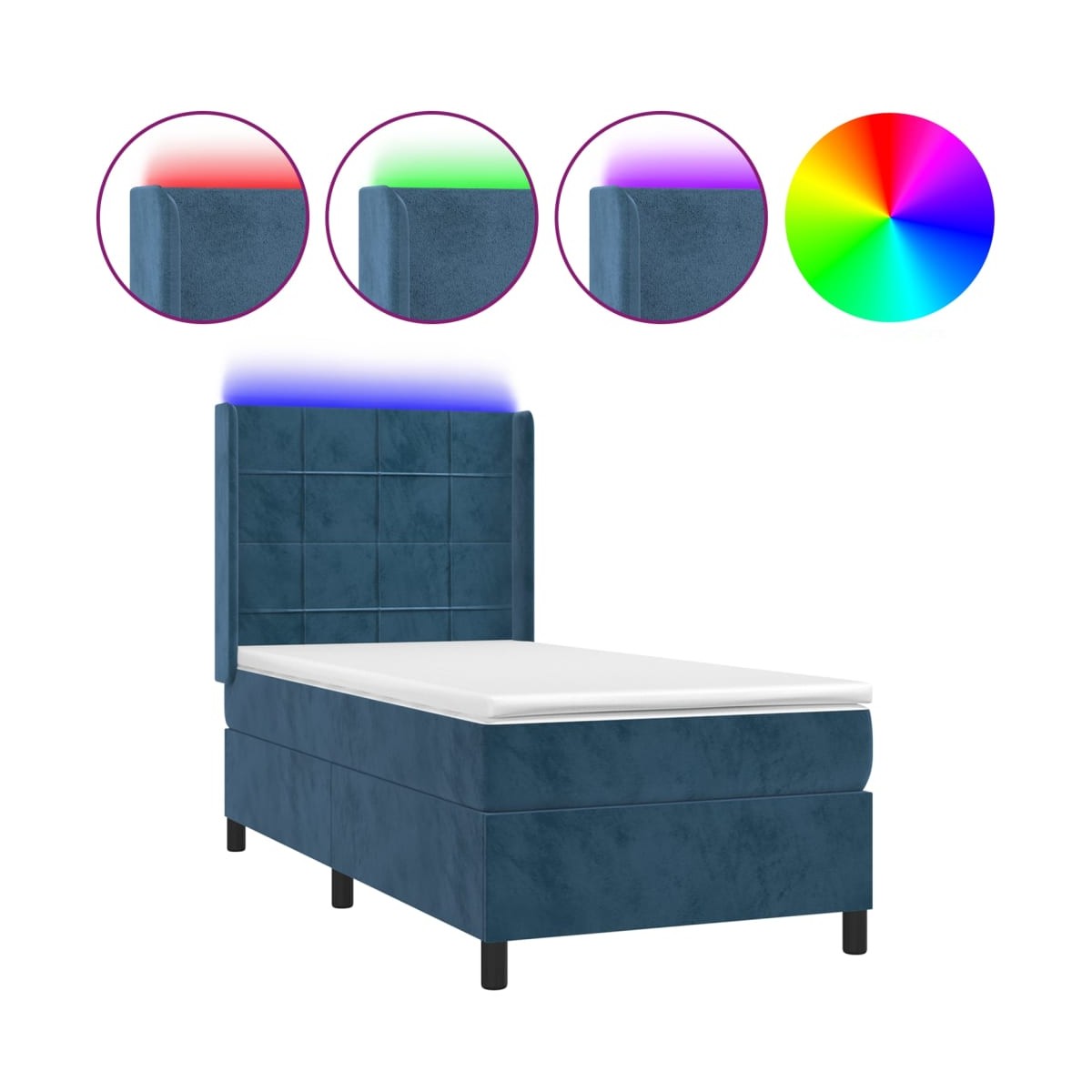 Utiliza esta cama tipo box spring con colchón y luces LED para disfrutar de un sueño reparador. Será el centro de atención del dormitorio. Terciopelo suave: El terciopelo es una tela suave y lujosa, reconocida por su denso pelo de fibras cortadas de forma uniforme que tienen una suave pelusa. La tela de terciopelo posee un característico y suave tacto, lo que hace que sea cómoda al tacto.Cabecero práctico: El cabecero de la cama es ajustable en altura según tus preferencias. El cabecero de la cama te proporciona un excelente apoyo para la espalda mientras estás sentado en la cama para leer o ver la televisión.Tira de LED de colores: Alegra la oscuridad con luces LED de colores.Colchón de muelles ensacados: El muelle ensacado individual incorporado es conocido por su altísima calidad, al tiempo que garantiza un alto nivel de durabilidad y adaptabilidad. Puede absorber eficazmente el ruido y los golpes causados por los lanzamientos y los giros.Protector de colchón respetuoso con la piel: El protector de colchón tiene una funda de tejido resistente y respetuoso con la piel, que lo hace suave y confortable. Nota:Por razones de higiene, el colchón no puede devolverse si se ha quitado o abierto el embalaje.Únicamente puedes cortar por la parte con el símbolo de las tijeras y únicamente la parte con el USB seguirá funcionando como antes.Cada producto viene con un manual de montaje en la caja para facilitar el montaje.