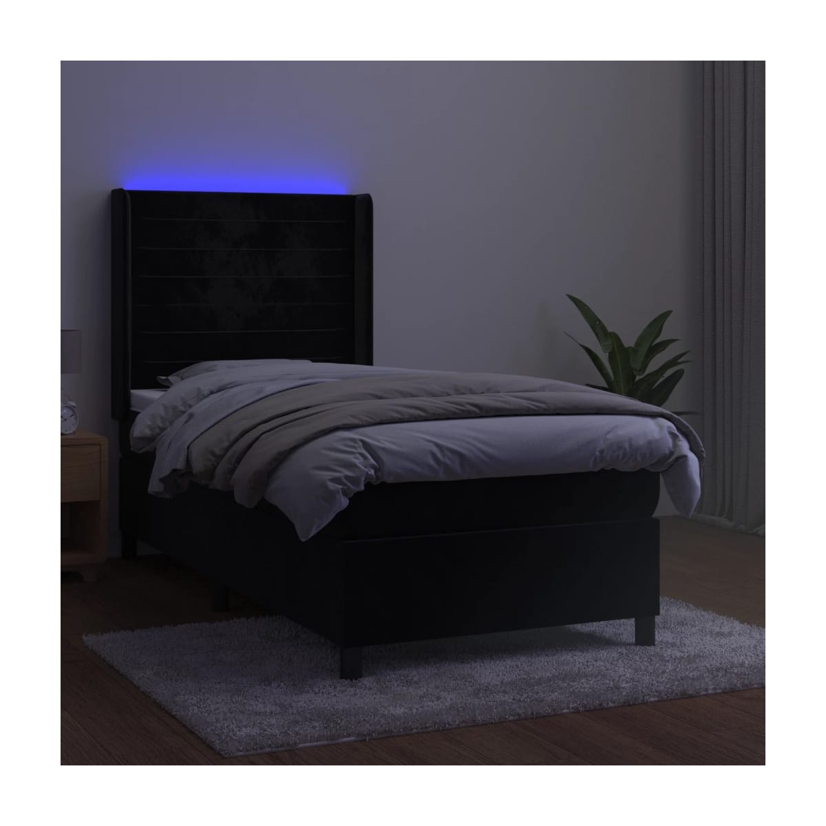 Utiliza esta cama tipo box spring con colchón y luces LED para disfrutar de un sueño reparador. Será el centro de atención del dormitorio. Terciopelo suave: El terciopelo es una tela suave y lujosa, reconocida por su denso pelo de fibras cortadas de forma uniforme que tienen una suave pelusa. La tela de terciopelo posee un característico y suave tacto, lo que hace que sea cómoda al tacto.Cabecero práctico: El cabecero de la cama es ajustable en altura según tus preferencias. El cabecero de la cama te proporciona un excelente apoyo para la espalda mientras estás sentado en la cama para leer o ver la televisión.Tira de LED de colores: Alegra la oscuridad con luces LED de colores.Colchón de muelles ensacados: El muelle ensacado individual incorporado es conocido por su altísima calidad, al tiempo que garantiza un alto nivel de durabilidad y adaptabilidad. Puede absorber eficazmente el ruido y los golpes causados por los lanzamientos y los giros.Protector de colchón respetuoso con la piel: El protector de colchón tiene una funda de tejido resistente y respetuoso con la piel, que lo hace suave y confortable. Nota:Por razones de higiene, el colchón no puede devolverse si se ha quitado o abierto el embalaje.Únicamente puedes cortar por la parte con el símbolo de las tijeras y únicamente la parte con el USB seguirá funcionando como antes.Cada producto viene con un manual de montaje en la caja para facilitar el montaje.El producto tiene un conector USB, pero no se incluye la fuente de alimentación USB de 5 V certificada.
