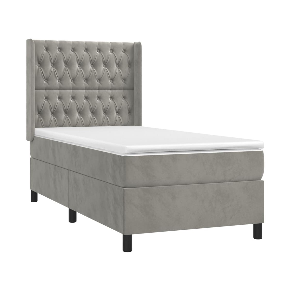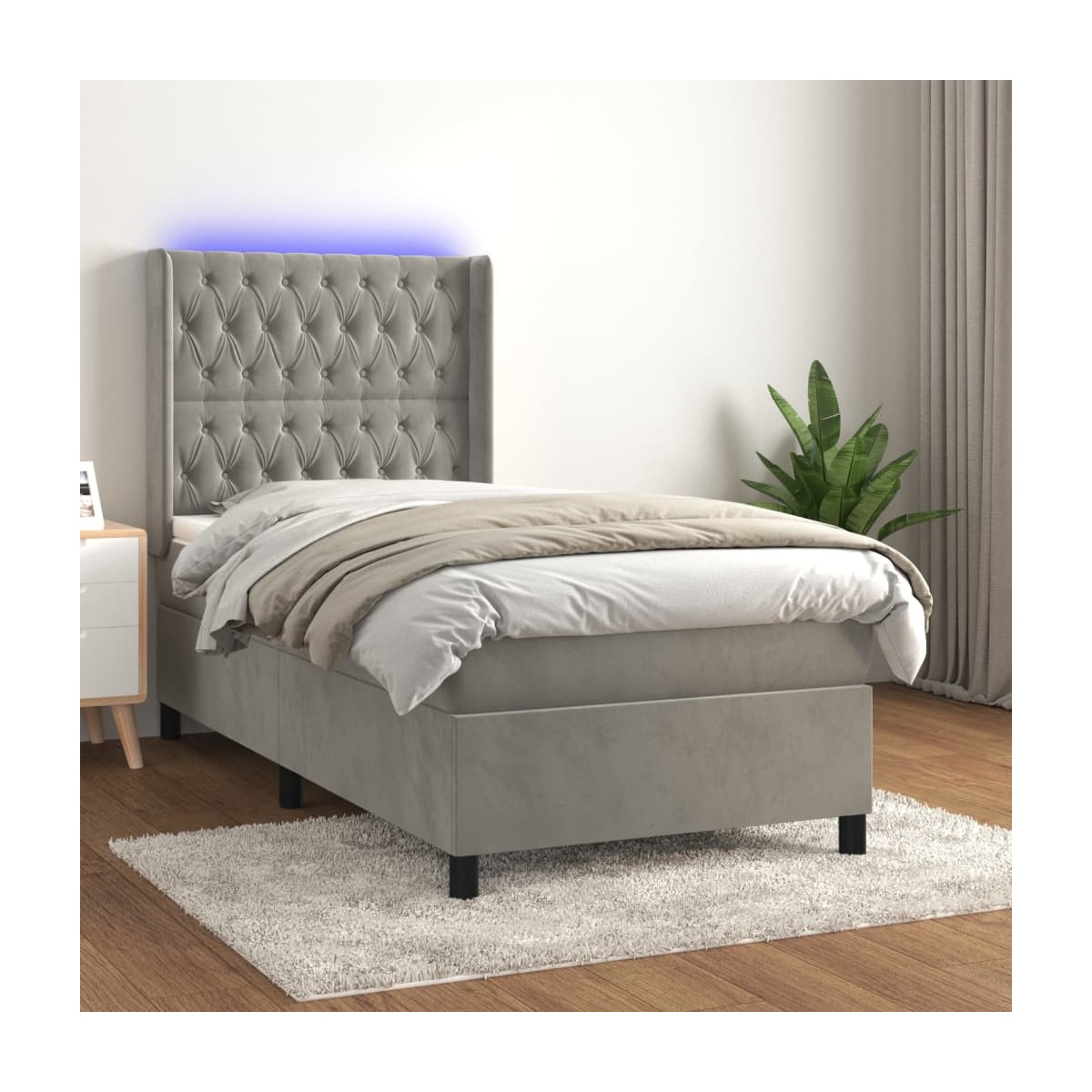 Utiliza esta cama box spring con colchón y LED para disfrutar de un sueño reparador. Es el centro de atención de tu dormitorio. Terciopelo suave: El terciopelo es una tela suave y lujosa, reconocida por su denso pelo de fibras cortadas de forma uniforme que tienen una suave pelusa. La tela de terciopelo posee un característico y suave tacto, lo que hace que sea cómoda al tacto.Cabecero práctico: El cabecero de la cama es ajustable en altura según tus preferencias. El cabecero de la cama te proporciona un excelente apoyo para la espalda mientras estás sentado en la cama para leer o ver la televisión.Tira de LED de colores: Alegra la oscuridad con luces LED de colores.Colchón de muelles ensacados: El muelle ensacado individual incorporado es conocido por su altísima calidad, al tiempo que garantiza un alto nivel de durabilidad y adaptabilidad. Puede absorber eficazmente el ruido y los golpes causados por los lanzamientos y los giros.Protector de colchón respetuoso con la piel: El protector de colchón tiene una funda de tejido resistente y respetuoso con la piel, que lo hace suave y confortable. Nota:Por razones de higiene, el colchón no puede devolverse si se ha quitado o abierto el embalaje.Únicamente puedes cortar por la parte con el símbolo de las tijeras y únicamente la parte con el USB seguirá funcionando como antes.Cada producto viene con un manual de montaje en la caja para facilitar el montaje.El producto tiene un conector USB, pero no se incluye la fuente de alimentación USB de 5 V certificada.