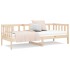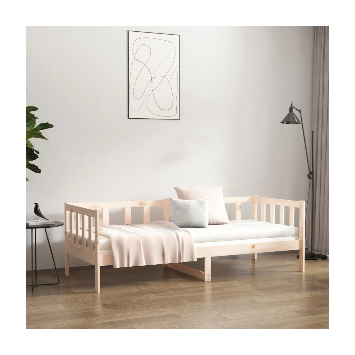 Este versátil sofá cama de madera se puede usar como cama en el dormitorio y también encaja a la perfección como sofá en el salón. Se adapta perfectamente a tus diferentes necesidades, lo que te proporciona mucho espacio para dormir y descansar. Madera maciza de pino: La madera maciza de pino es un bonito material natural. La madera de pino tiene vetas rectas, y los nudos dan al material su distintivo aspecto rústico. Esta cama para invitados está hecha de madera maciza de pino, más estable y duradera. Barreras de cama por 3 lados: Este sofá cama tiene barreras de cama en los lados para proporcionar una sensación de seguridad y también para añadir un toque de estilo sofisticado a la casa. Diseño de listones: El somier de listones permite que el aire circule para mantener el colchón fresco durante más tiempo, además de mejorar la capacidad de carga de la cama y de asegurar su estabilidad. Sofá cama multiusos: Este sofá cama de madera se puede utilizar como sofá durante el día o como cama por la noche. Es una solución rápida para alojar invitados por la noche sin ocupar mucho espacio. Espacio de almacenamiento adicional: Aprovecha al máximo el espacio que hay debajo de la cama para guardar varios objetos. Ideal para guardar cajas para organizar tu ropa, juguetes o edredones. Nota: Ten en cuenta que la entrega incluye únicamente una estructura de cama. El colchón no está incluido. Puedes echar un vistazo a nuestra tienda para buscar el correspondiente colchón.Cada producto viene con un manual de montaje en la caja para facilitar el montaje.