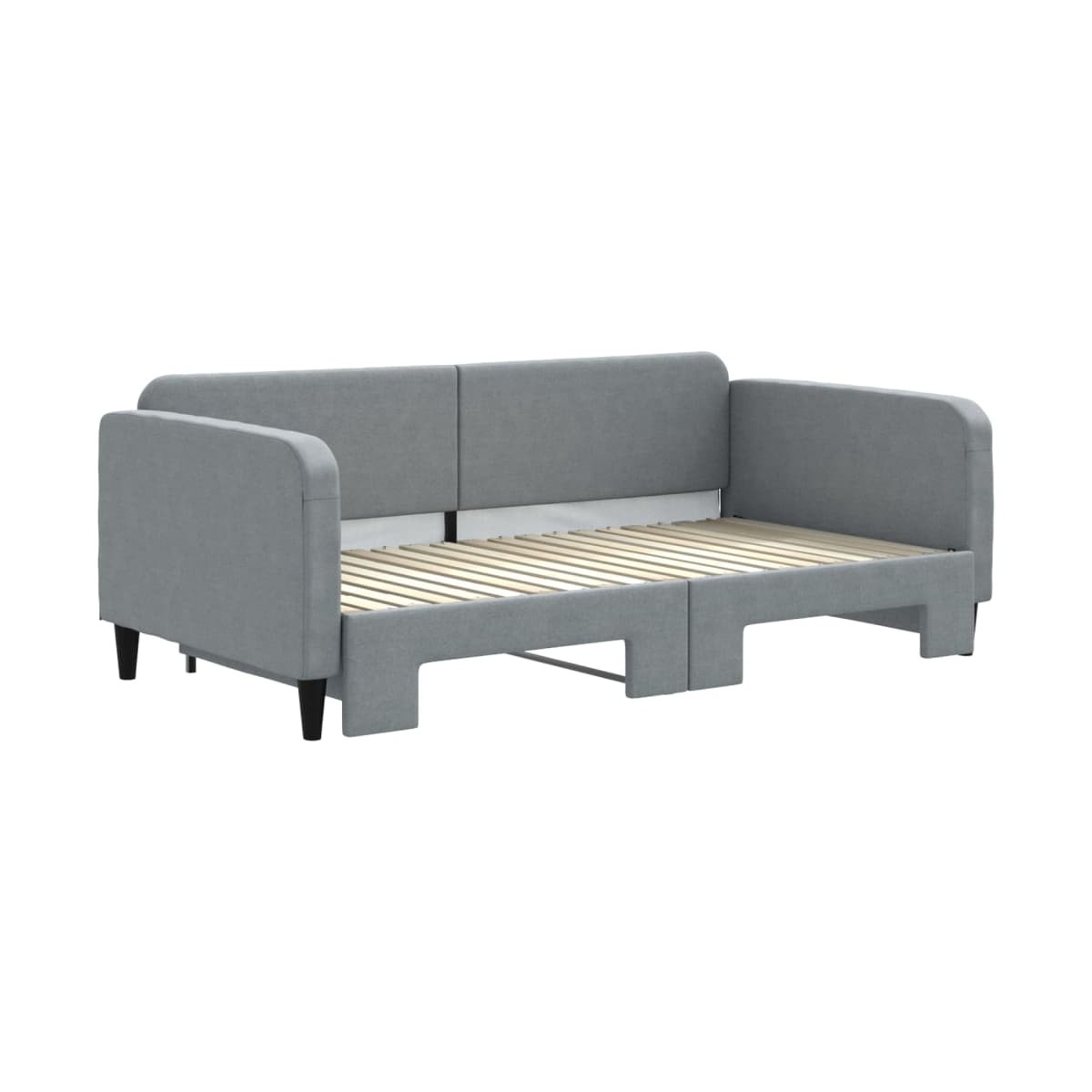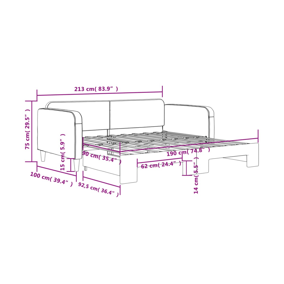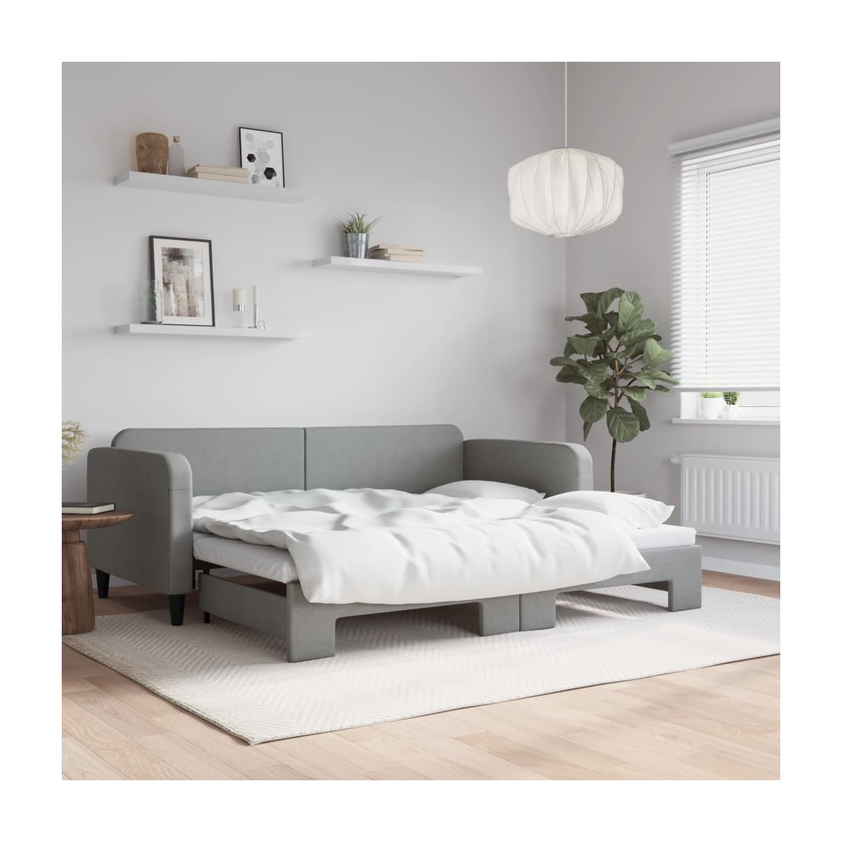 Este sofá cama 2 en 1 con cama nido, que sirve como sofá y cama, es un complemento práctico y llamativo para tu salón o dormitorio. Sofá cama versátil: El sofá cama funciona como sofá durante el día y se convierte fácilmente en una cama doble por la noche sacando la cama nido, lo que proporciona una solución práctica para recibir invitados y maximizar el espacio.Tela duradera: La cama de invitados está hecha de tela, que posee un aspecto sencillo y limpio, además de ser transpirable y duradera.Construcción maciza: La estructura de madera y metal de la cama nido garantiza su solidez y estabilidad. Información útil:Los colchones no están incluidos en este sofá cama. Ofrecemos una variada selección de colchones. Puedes echar un vistazo a nuestra tienda para buscar el correspondiente colchón.