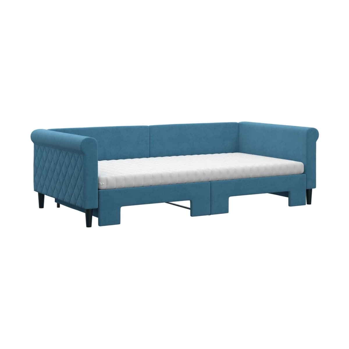 Este sofá cama 2 en 1 con cama nido, que sirve como sofá y cama, es un complemento práctico y llamativo para tu salón o dormitorio. Sofá cama versátil: El sofá cama funciona como sofá durante el día y se convierte fácilmente en una cama doble por la noche sacando la cama nido, lo que proporciona una solución práctica para recibir invitados y maximizar el espacio.Cómodo colchón de espuma: Esta cama se suministra con dos colchones de espuma para un máximo apoyo y una comodidad óptima.Terciopelo suave y construcción sólida: Este sofá cama tiene una estructura resistente hecha de madera y metal y está tapizado en terciopelo suave y cómodo.Diseño moderno: ¡El sofá cama tiene un diseño moderno con líneas nítidas, un aspecto minimalista, así como luz natural, y añadirá un estilo moderno a la casa!