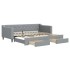 Este sofá cama 2 en 1 con cama nido, que sirve como sofá y cama, es un complemento práctico y llamativo para tu salón o dormitorio. Sofá cama versátil: El sofá cama funciona como sofá durante el día y se convierte fácilmente en una cama doble por la noche sacando la cama nido, lo que proporciona una solución práctica para recibir invitados y maximizar el espacio. Amplio espacio de almacenamiento: Esta cama de invitados tiene dos cajones con ruedas que brindan un amplio espacio para guardar ropa, calcetines, juguetes, cojines, etc. Tela duradera y construcción sólida: Este sofá cama tiene una estructura resistente hecha de madera y metal y está tapizado con una tela duradera y cómoda.Diseño moderno: ¡El sofá cama tiene un diseño moderno con líneas nítidas, un aspecto minimalista y añadirá un estilo moderno a la casa! Información útil:El colchón no está incluido con la cama. Ofrecemos una variada selección de colchones. Puedes echar un vistazo a nuestra tienda para buscar el correspondiente colchón.