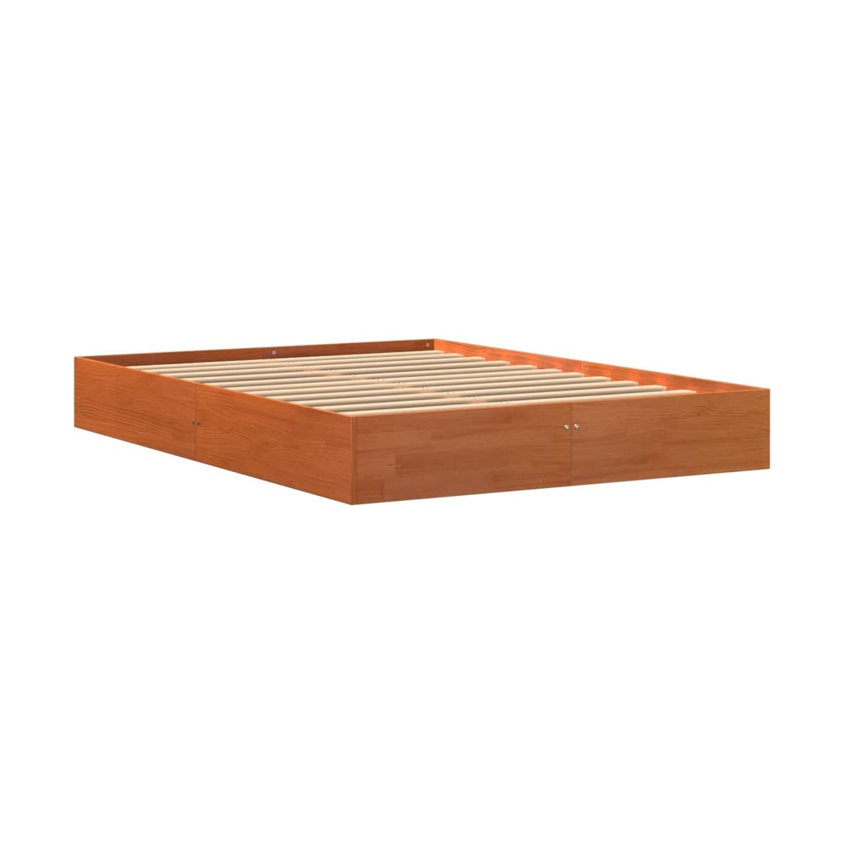 ¡Disfruta de una buena noche de sueño en esta estructura de cama de madera! Es un aporte práctico y decorativo para la casa. Madera de pino maciza: La madera de pino maciza es un bonito material natural. La madera de pino tiene vetas rectas, y los nudos dan al material su distintivo aspecto rústico.Estructura de cama estable: La estructura de madera garantiza su solidez y estabilidad.Listones robustos: Los listones de madera contrachapada proporcionan una buena distribución del peso, lo que garantiza que el colchón se mantenga en tu sitio con cada giro y vuelta del cuerpo mientras duermes. Información útil:El colchón no está incluido con la cama. Disponemos de una variada selección de colchones. Puedes echar un vistazo a nuestra tienda para buscar el colchón correspondiente.