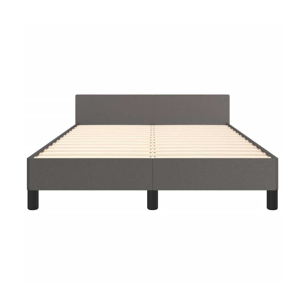 ¡Consigue un sueño más reparador con esta estructura de cama con cabecero! Es un aporte acogedor para cualquier dormitorio. Material duradero: El cuero sintético de primera calidad es un material muy duradero. Es resistente a las manchas, por lo que es fácil de limpiar con un paño húmedo. Además, la superficie lisa da un aspecto lujoso y la belleza del cuero auténtico.Patas de apoyo: La cama se apoya en patas robustas, que garantizan su estabilidad, seguridad y firmeza.Listones robustos: Los listones de madera contrachapada proporcionan una buena distribución del peso, lo que garantiza que el colchón se mantenga en tu sitio con cada giro y vuelta del cuerpo mientras duermes.Excelente apoyo: El cabecero de la cama te proporciona un excelente apoyo para la espalda mientras estás sentado en la cama para leer o ver la televisión. Información útil:La entrega incluye solo una estructura de cama. El colchón no está incluido. Puedes echar un vistazo en nuestra tienda para buscar colchones a juego.