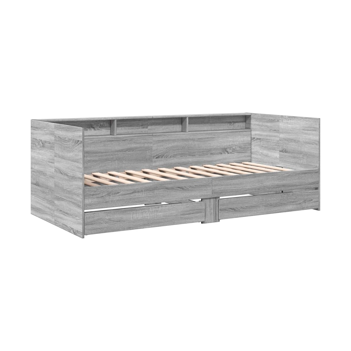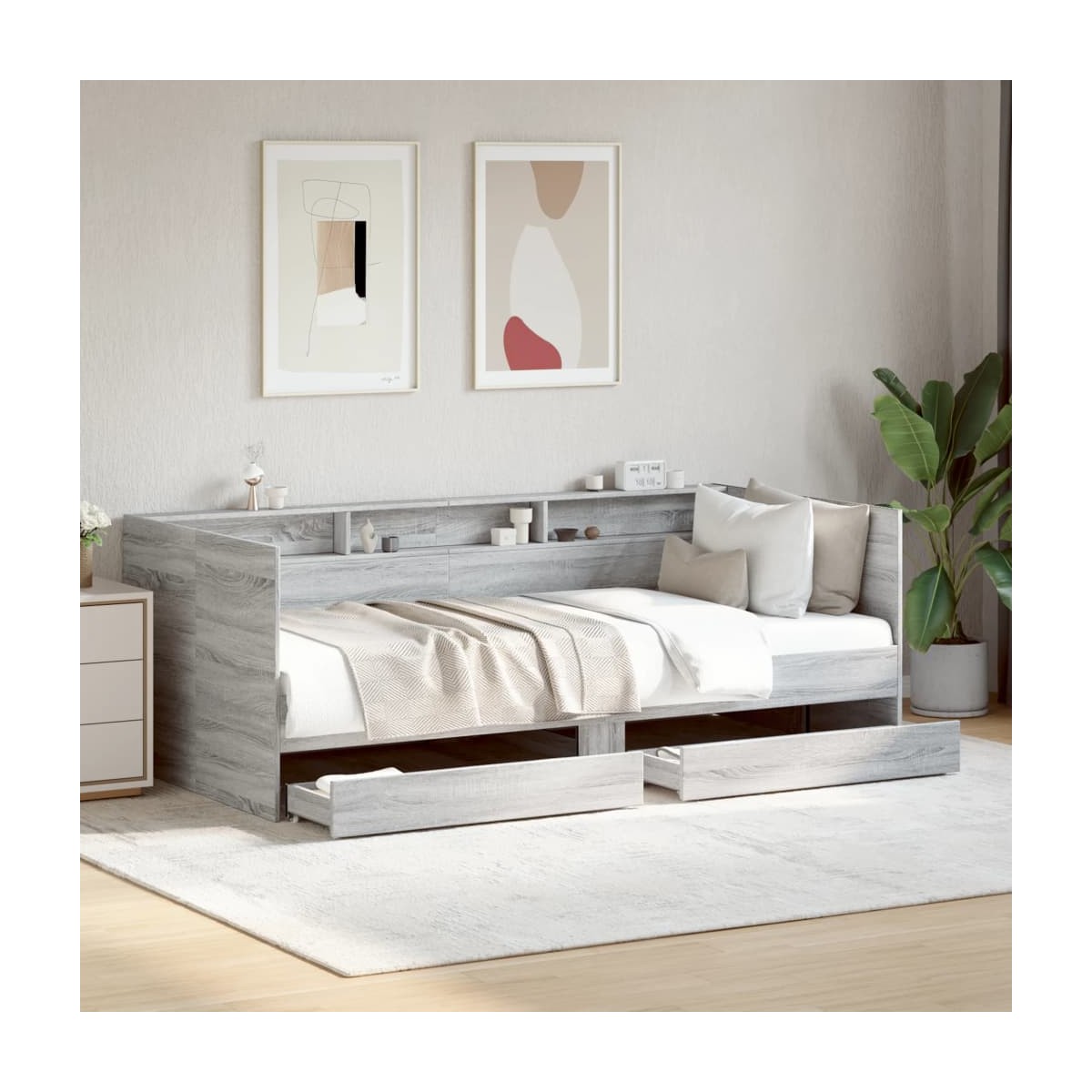 Este sofá cama 2 en 1 con cajones, que sirve como sofá y cama, es un complemento práctico y llamativo para tu salón o dormitorio. Sofá cama versátil: El sofá cama funciona como sofá durante el día y se convierte fácilmente en cama por la noche, lo que proporciona una solución práctica para recibir invitados y maximizar el espacio. Amplio espacio de almacenaje: Esta cama de invitados tiene 2 cajones con ruedas que brindan un amplio espacio para guardar ropa, calcetines, juguetes, cojines, etc.Sólida construcción: Este sofá cama tiene una estructura robusta de madera de ingeniería. La madera de ingeniería es de una calidad excepcional con una superficie lisa y cuenta con la fuerza, la estabilidad y la resistencia a la humedad. Información útil:Ten en cuenta que la entrega incluye únicamente una estructura de cama. El colchón no está incluido. Puedes echar un vistazo a nuestra tienda para buscar el correspondiente colchón.