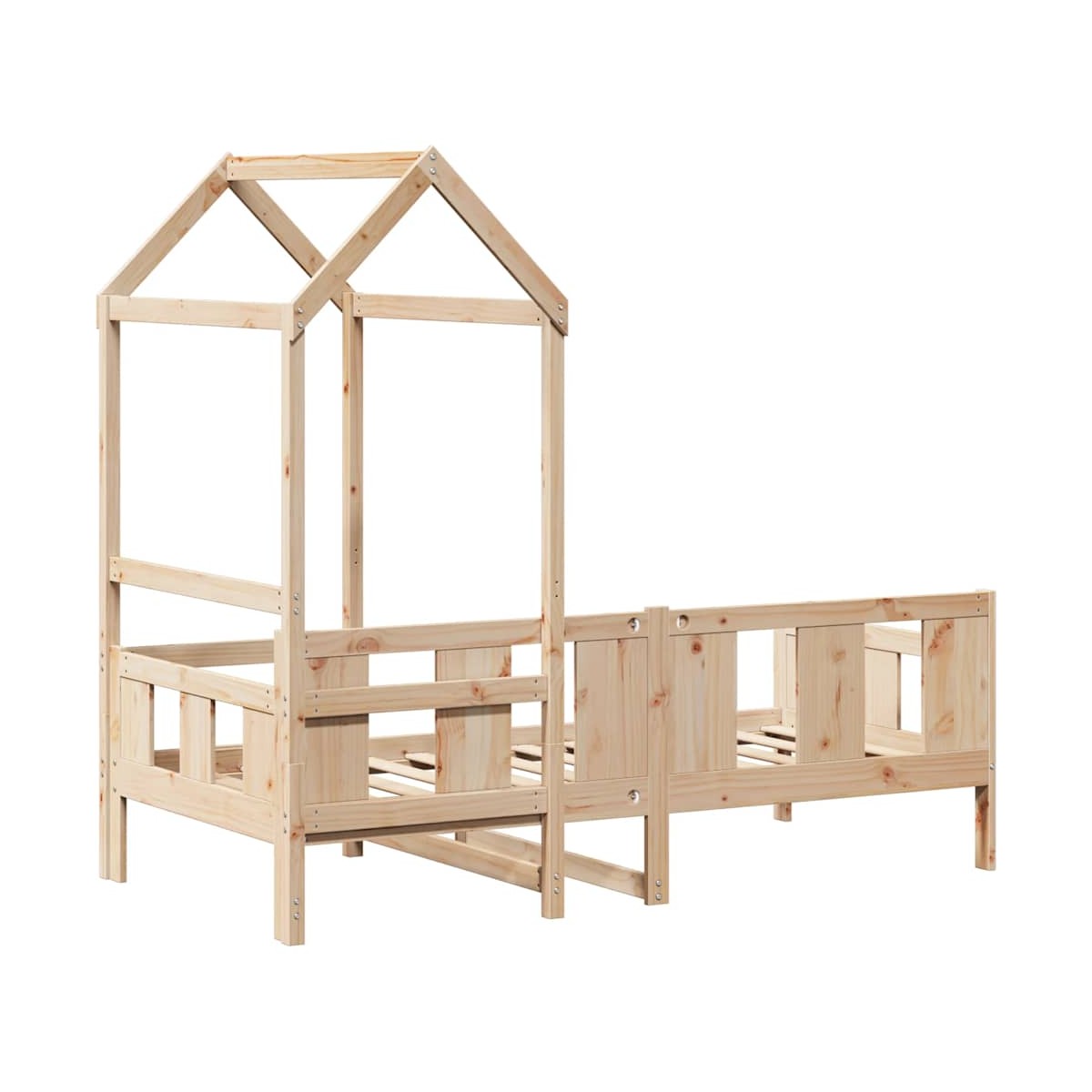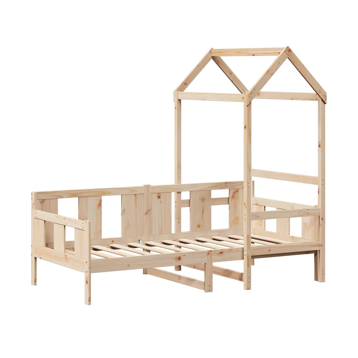 Este versátil sofá cama de madera se puede usar como cama en el dormitorio y también encaja a la perfección como sofá en el salón. Se adapta perfectamente a tus diferentes necesidades, lo que te proporciona mucho espacio para dormir y descansar. Madera de pino maciza: La madera de pino maciza es un bonito material natural. La madera de pino tiene vetas rectas, y los nudos dan al material su distintivo aspecto rústico.Barras de cama de 3 lados: Esta cama tiene un diseño único en el lateral de la cama, que proporciona una sensación de seguridad y además añade un toque de estilo sofisticado a tu hogar.Diseño de listones: El somier de madera proporciona una mejor circulación del aire para mantener el colchón fresco durante más tiempo, además de mejorar la capacidad de carga de la cama y de asegurar su estabilidad.Espacio de almacenamiento adicional: Aprovecha al máximo el espacio que hay debajo de la cama para guardar varios objetos. Ideal para guardar cajas para organizar tu ropa, juguetes o edredones.Gran diversión: Al combinar el techo con tu sofá cama, puedes crear un escondite que le ofrezca a tu hijo mucha diversión a la hora de acostarse. Este innovador añadido al cuarto no solo será un punto emocionante, sino que también traerá asombro y emoción a la habitación.Puerta lateral abierta: El techo cuenta con una puerta lateral abierta, lo que facilita el acceso para que tus hijos entren y salgan de la cama. Información útil:El colchón no está incluido con la cama. Disponemos de una variada selección de colchones. Puedes echar un vistazo a nuestra tienda para buscar el colchón correspondiente.