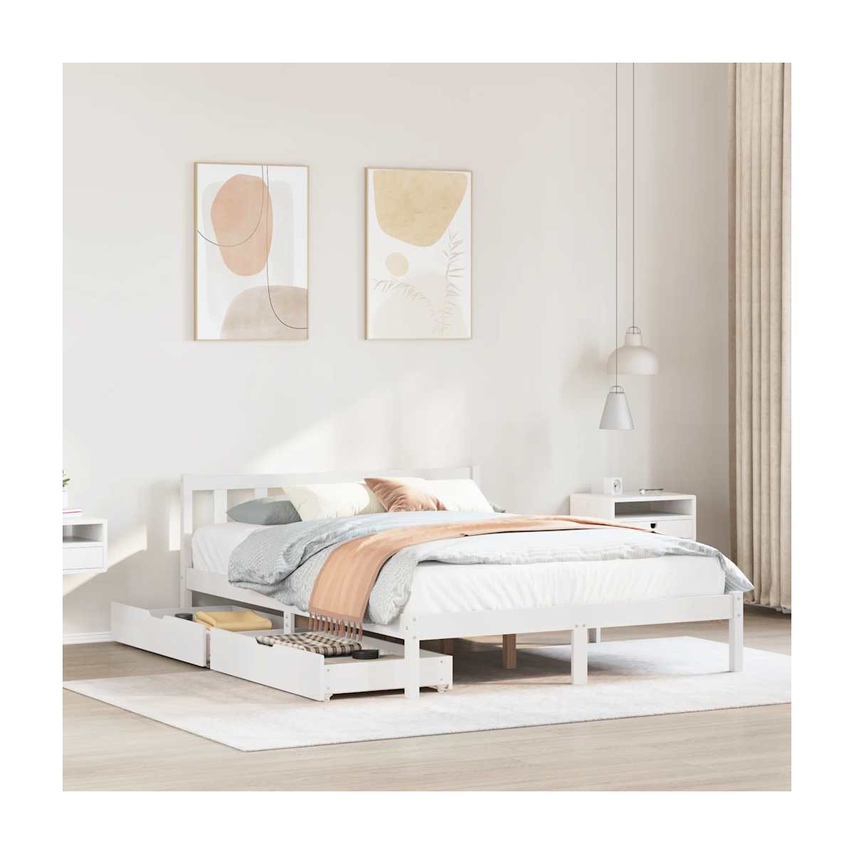 Consigue un sueño más reparador con esta estructura de cama. Es un aporte acogedor para cualquier dormitorio. Estructura estable y duradera: La madera de pino maciza es conocida por su resistencia y durabilidad. Sus vetas rectas y sus característicos nudos contribuyen a su encanto rústico.Somier de láminas para un soporte óptimo: La estructura de cama está equipada con un somier de láminas para el apoyo y la transpirabilidad del colchón.Aprovecha al máximo el espacio: Esta estructura de cama cuenta con dos cajones debajo, que proporcionan almacenamiento para artículos como ropa de cama extra, ropa de temporada y juguetes.Maniobrabilidad sin esfuerzo: Este cajón de almacenamiento bajo la cama cuenta con cuatro ruedas, que proporcionan una maniobrabilidad suave y sin esfuerzo para deslizarse dentro y fuera de debajo de tu cama. Información útil:El colchón no está incluido con la cama. Disponemos de una variada selección de colchones. Puedes echar un vistazo a nuestra tienda para buscar el colchón correspondiente.