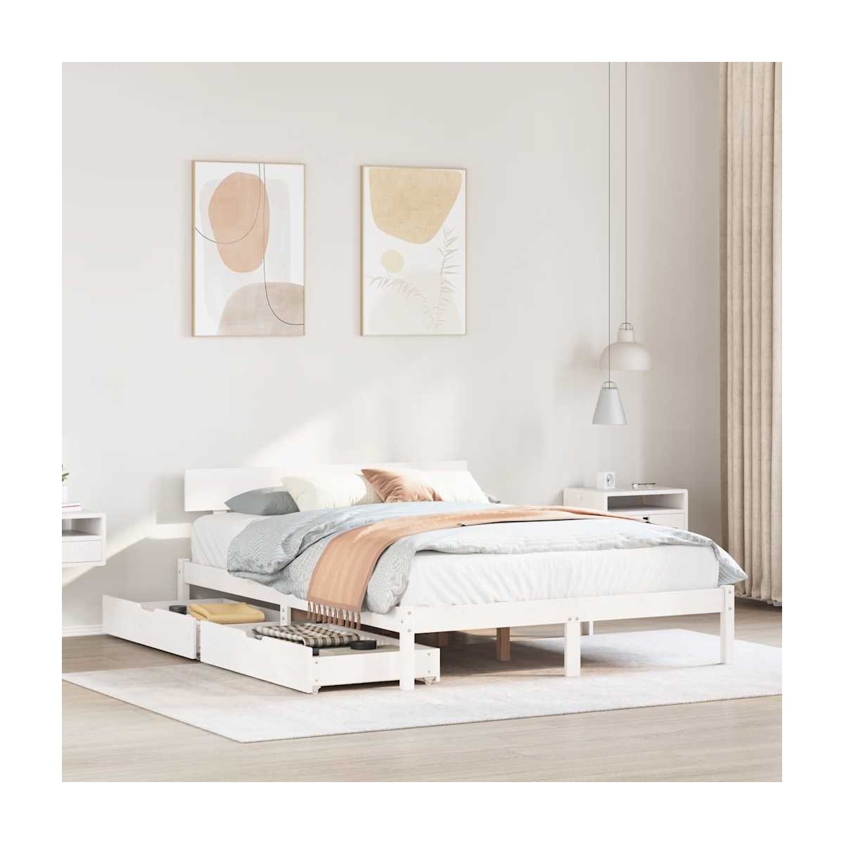 Consigue un sueño más reparador con esta estructura de cama. Es un aporte acogedor para cualquier dormitorio. Estructura estable y duradera: La madera de pino maciza es conocida por su resistencia y durabilidad. Sus vetas rectas y sus característicos nudos contribuyen a su encanto rústico.Somier de láminas para un soporte óptimo: La estructura de cama está equipada con un somier de láminas para el apoyo y la transpirabilidad del colchón.Aprovecha al máximo el espacio: Esta estructura de cama cuenta con dos cajones debajo, que proporcionan almacenamiento para artículos como ropa de cama extra, ropa de temporada y juguetes.Maniobrabilidad sin esfuerzo: Este cajón de almacenamiento bajo la cama cuenta con cuatro ruedas, que proporcionan una maniobrabilidad suave y sin esfuerzo para deslizarse dentro y fuera de debajo de tu cama. Información útil:El colchón no está incluido con la cama. Disponemos de una variada selección de colchones. Puedes echar un vistazo a nuestra tienda para buscar el colchón correspondiente.